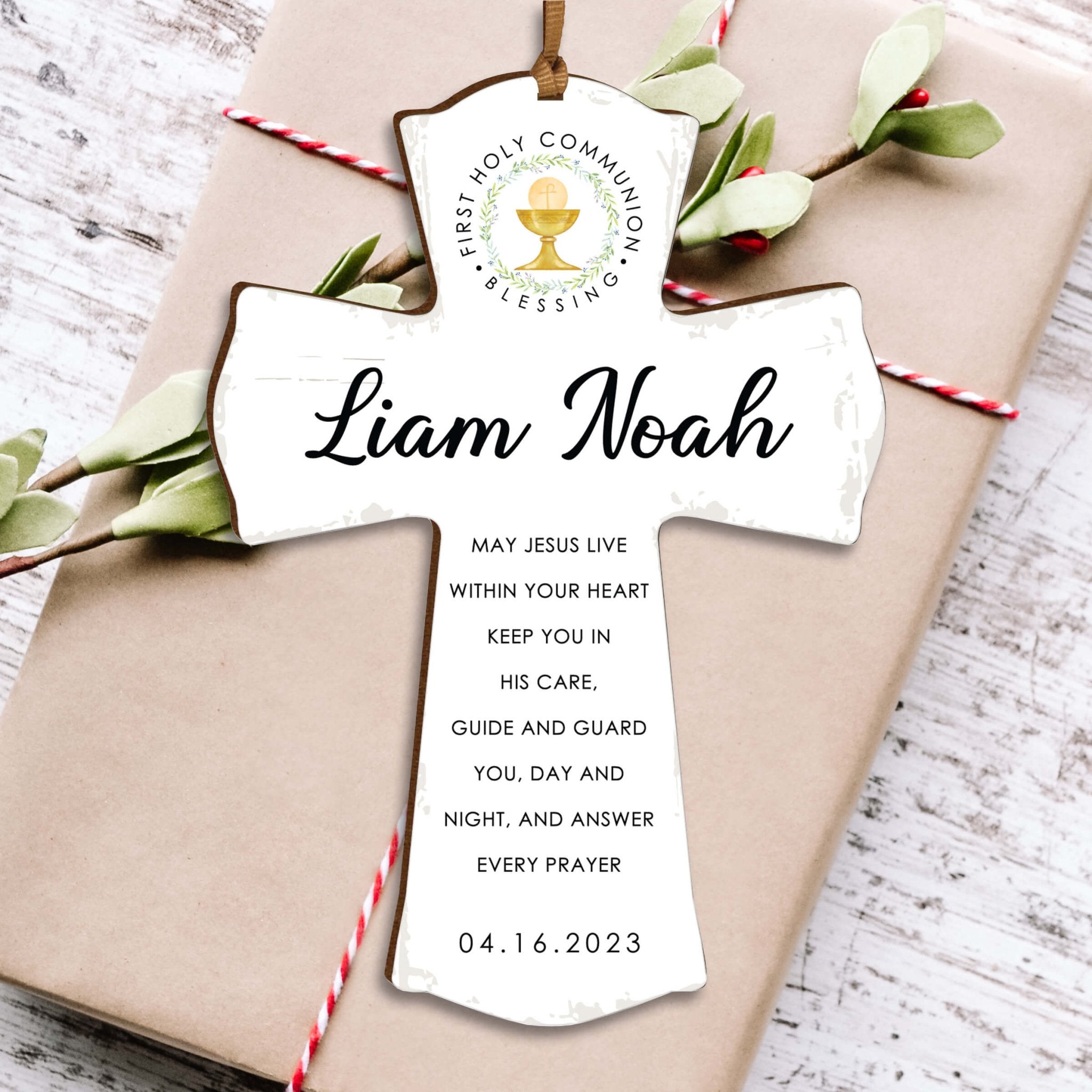 Crafted with care, this miniature cross showcases the importance of this religious milestone. It serves as a thoughtful and lasting gift for baby First Holy Communion, providing a visual reminder of their spiritual journey. Embrace the joyous occasion with this personalized wooden mini cross and create lasting memories for your loved ones.