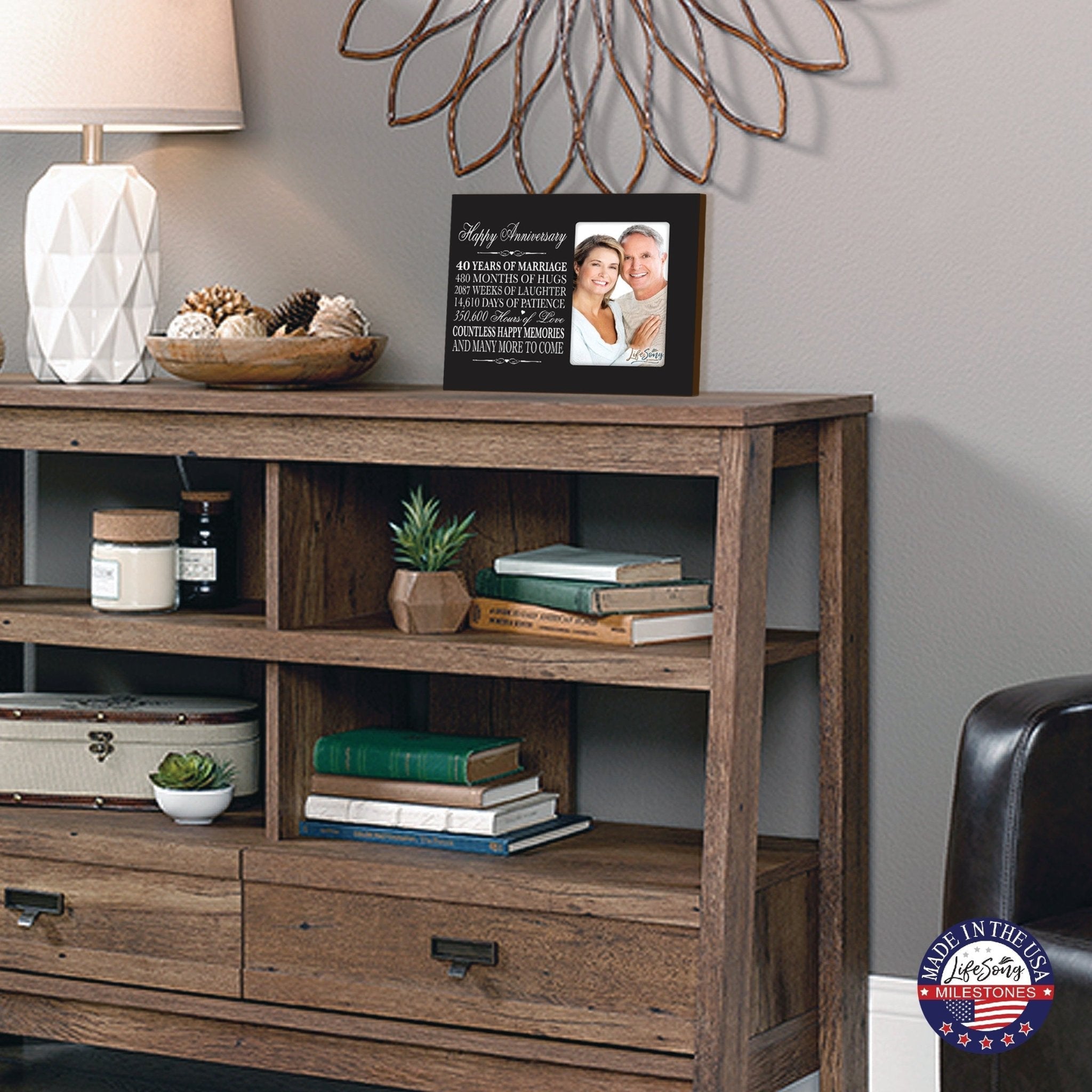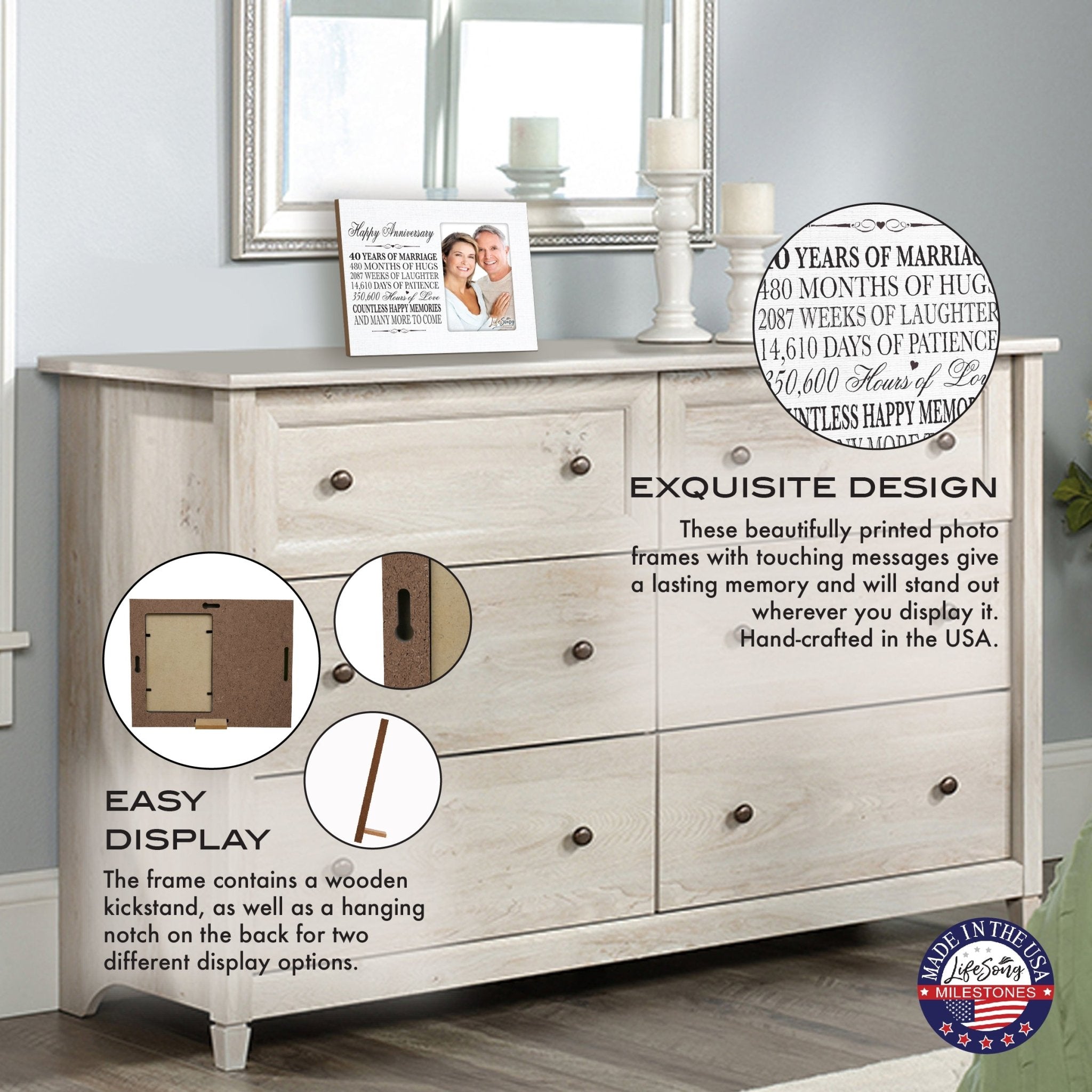 Celebrate four decades of love with our Couples Unique 40th Wedding Anniversary Photo Frame Decorations. This exquisite frame, designed for a 4x6 vertical photo, captures the essence of enduring love. The elegant design is a perfect blend of sophistication and sentimentality, making it an ideal 40th wedding anniversary gift. Crafted with attention to detail, this frame is a unique addition to your home decor. Surprise your spouse with this meaningful token, showcasing cherished memories. Whether for parents or friends, it's a thoughtful present that encapsulates the joy of 40 years together. Add to cart now and elevate your wedding anniversary celebration with this beautiful keepsake.