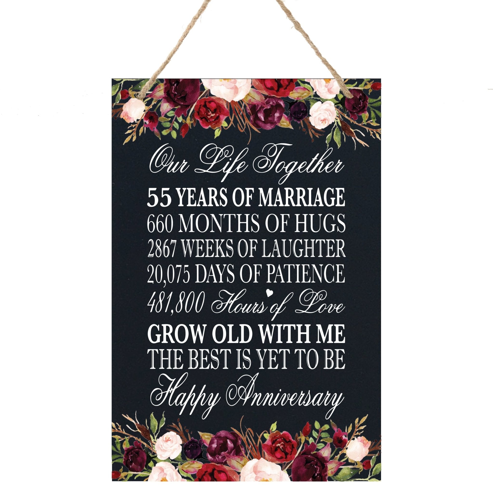 The rich design and exquisite detailing make it a perfect gift for the special duo celebrating their 55th anniversary. "Our Life. Together" is more than a plaque; it's a testament to the enduring nature of love that has flourished over five and a half decades. Elevate your space and celebrate this remarkable milestone with LifeSong Milestones.