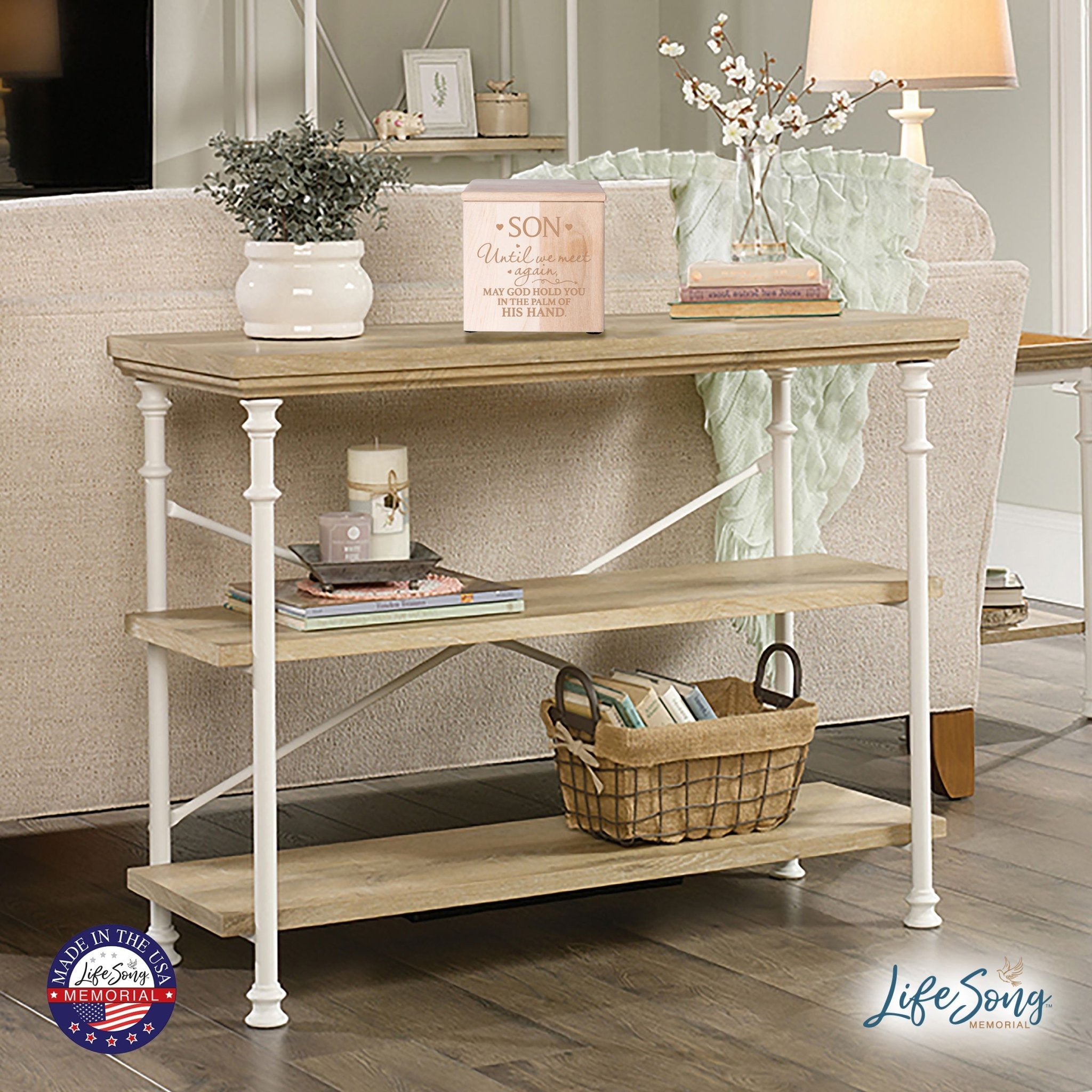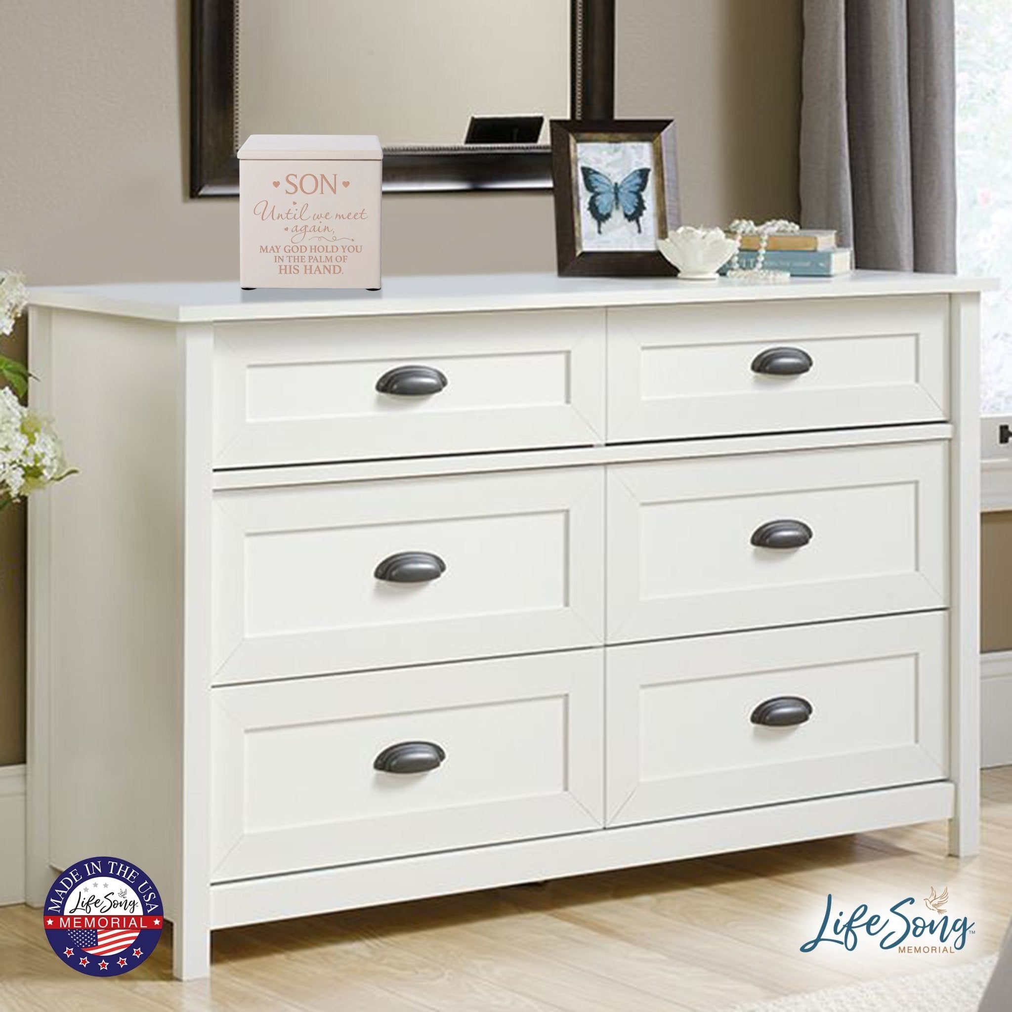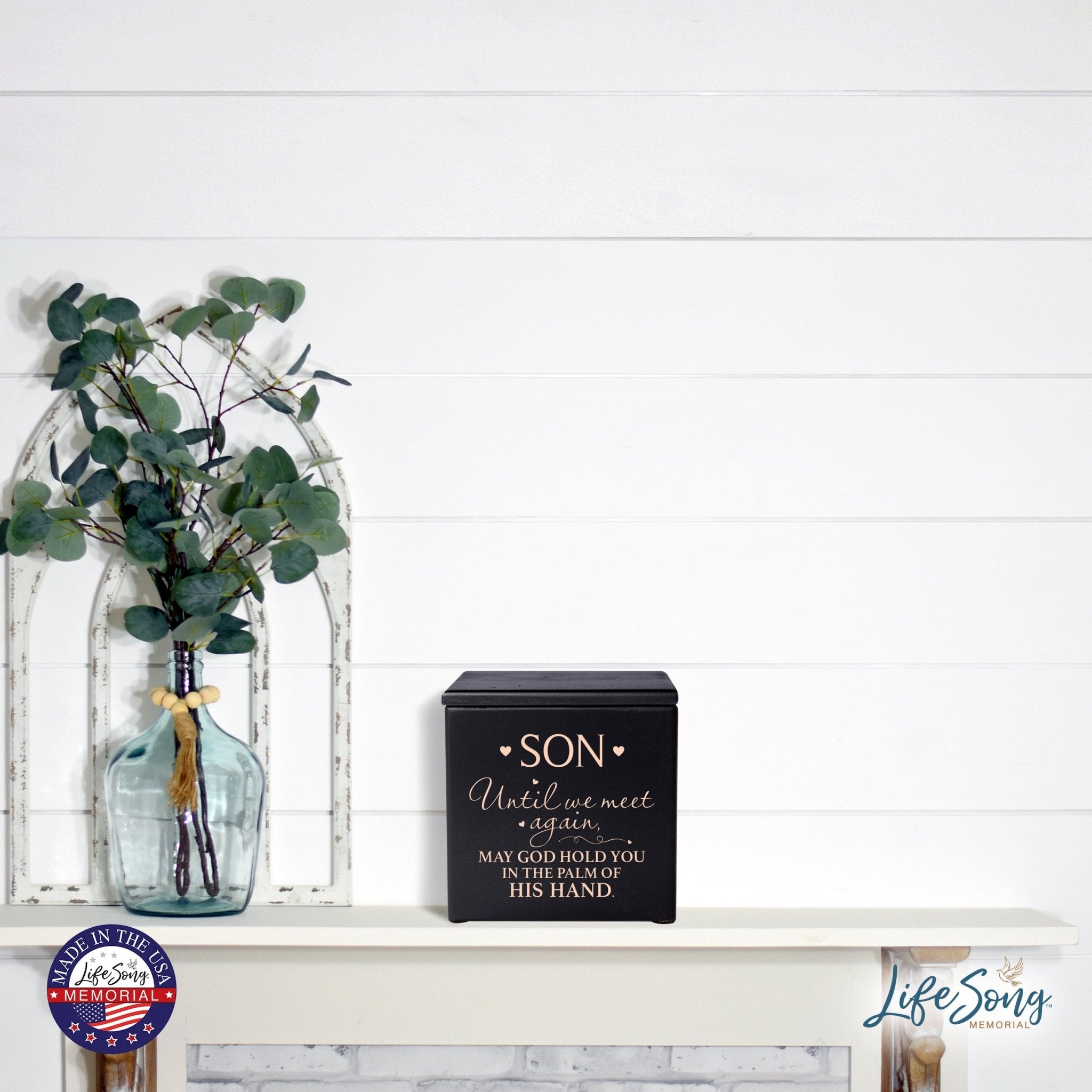 Honor your beloved son with our Decorative Memorial Wooden Keepsake Urns, designed to hold 49 cubic inches of human ashes. This unique wooden urn features beautifully digitally printed designs, making it a decorative and meaningful tribute. Crafted as a charming wooden box, it serves as a comforting memorial urn for adult ashes. Ideal for funeral services, this keepsake urn is both a lovely sympathy gift and a heartfelt bereavement gift idea. Our urns for human ashes offer both elegance and solace, perfect for remembering your loved one. Each urn includes a cremation bag for added convenience and care.