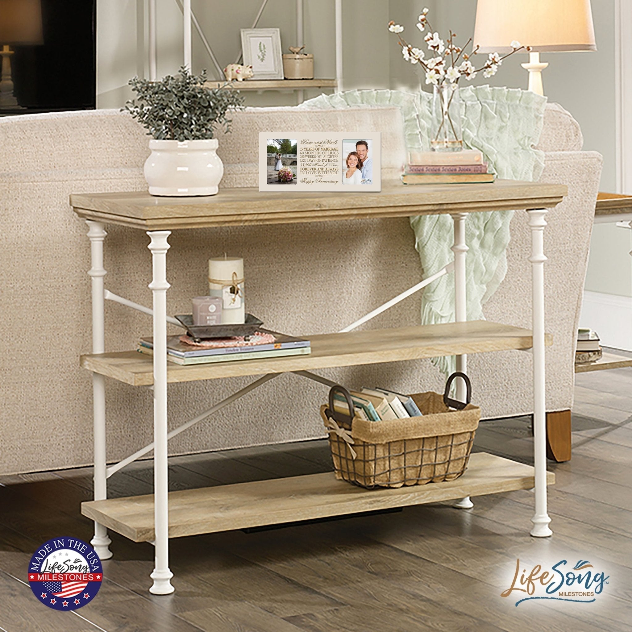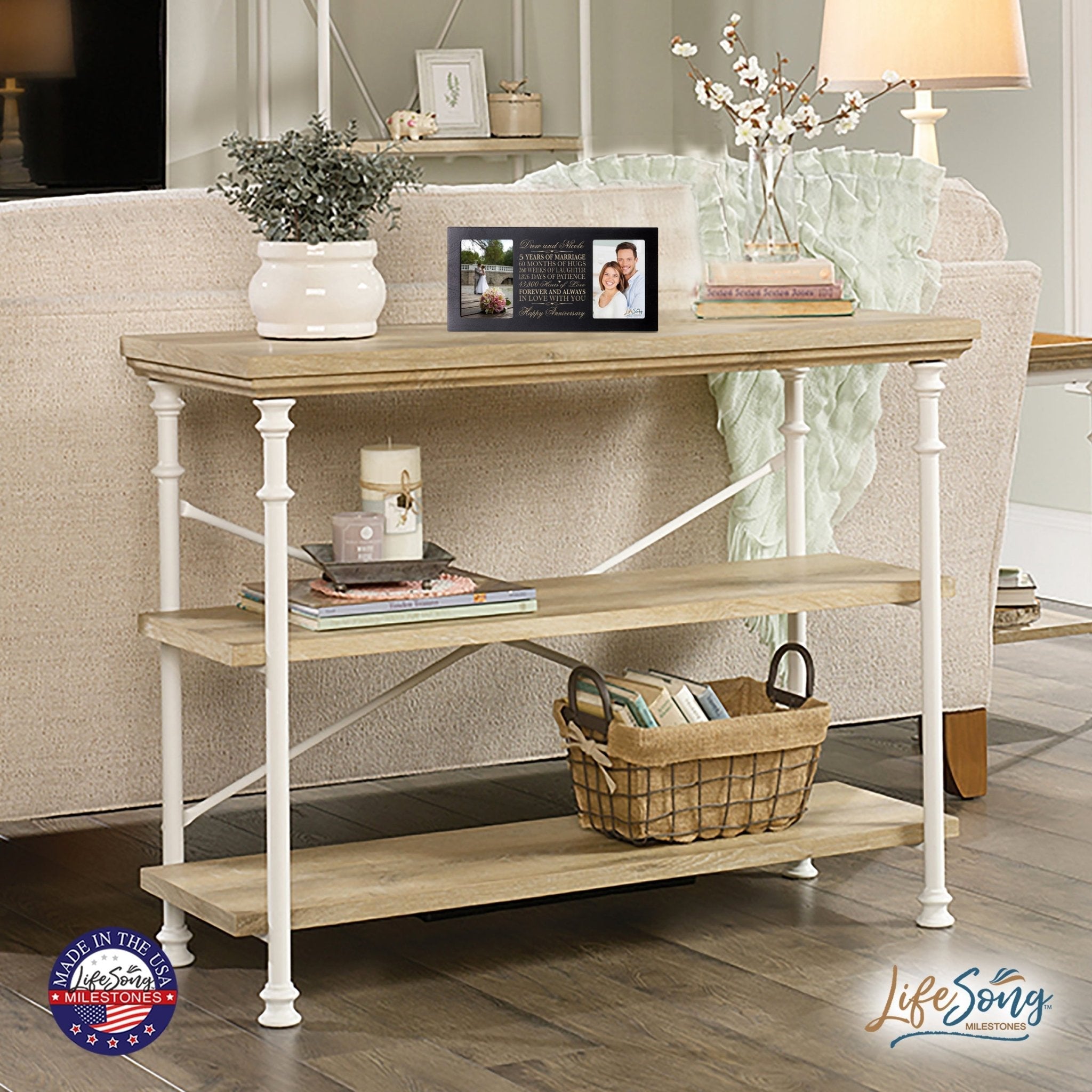 Celebrate five years of love with our Personalized 5th Wedding Anniversary Double Picture Frame. This exquisite frame is specially designed for couples, accommodating two 4x6 vertical photos, capturing cherished memories. The perfect addition to your home decor, it features a stylish design and durable construction. Emblazoned with "Happy Anniversary," it adds a touch of joy to any room. Surprise your spouse with this thoughtful gift, a symbol of enduring love. It's not just a picture frame; it's a heartfelt expression of your journey together. Make your 5th wedding anniversary unforgettable with this unique and personalized keepsake. Add to cart now!