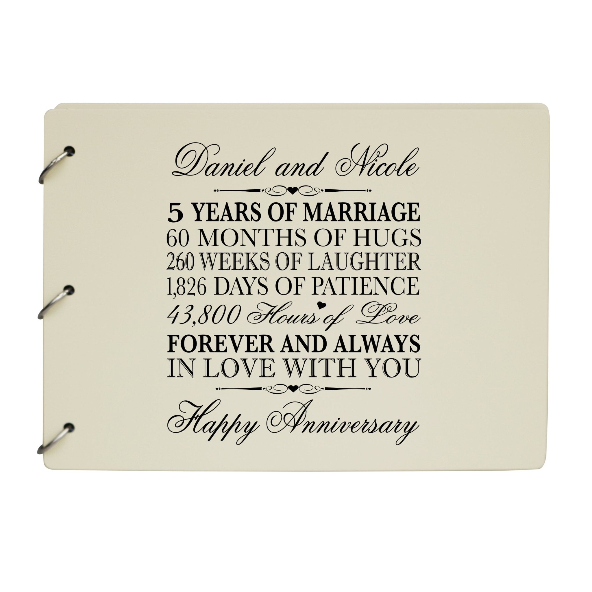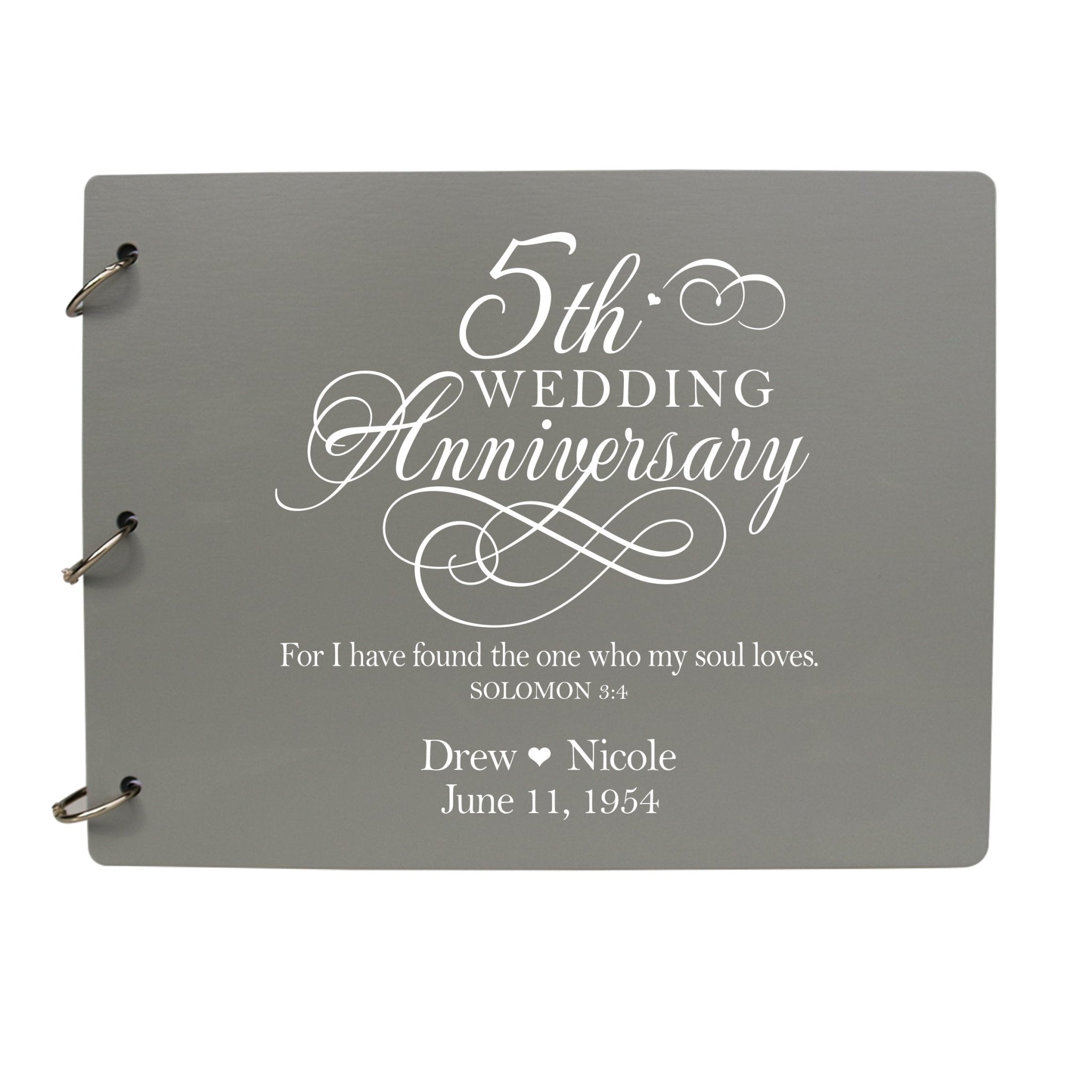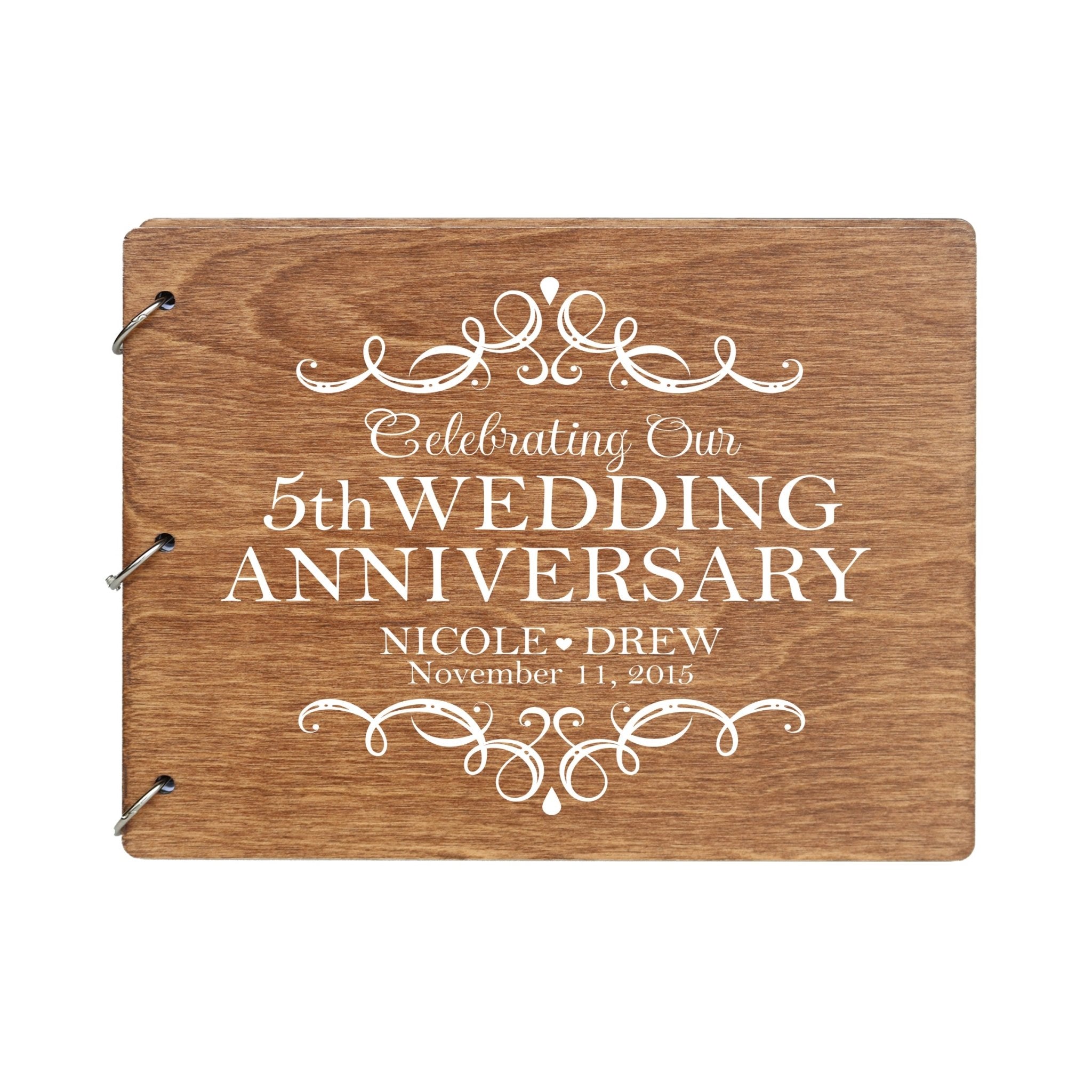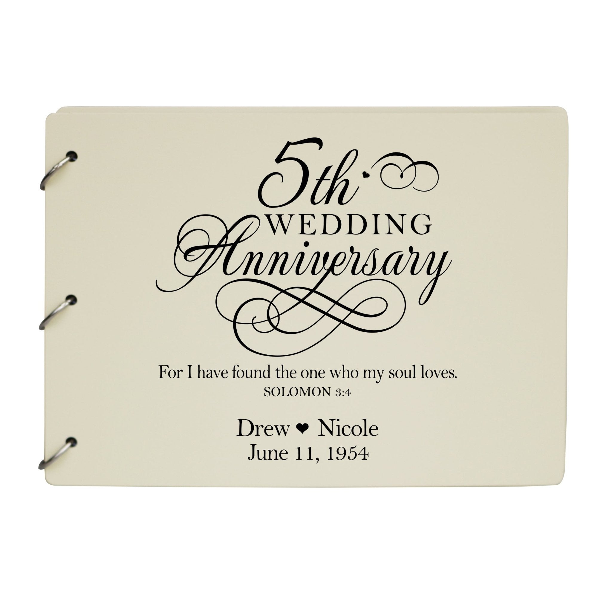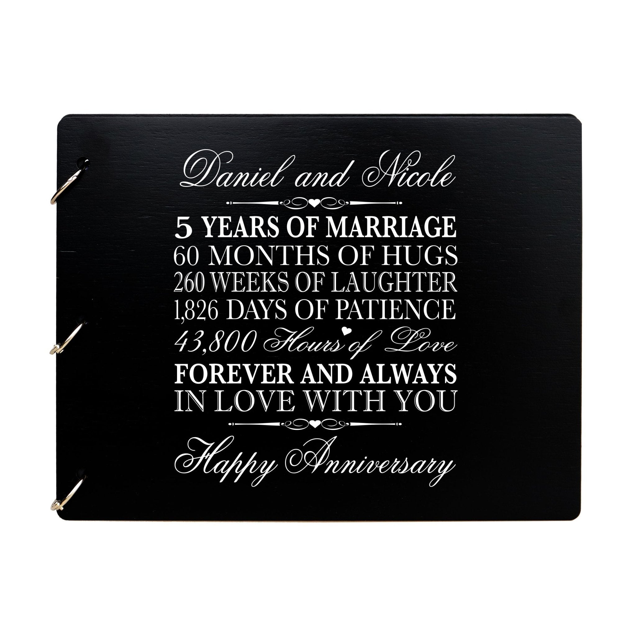 Commemorate five years of love and commitment with the LifeSong Milestones 5th Anniversary Guest Book. This personalized keepsake is the perfect way to capture heartfelt messages and well wishes from friends and family. With its elegant design and customizable features, including a personalized cover and plenty of space for guests to write, this guest book serves as a beautiful reminder of the love shared over the past five years.