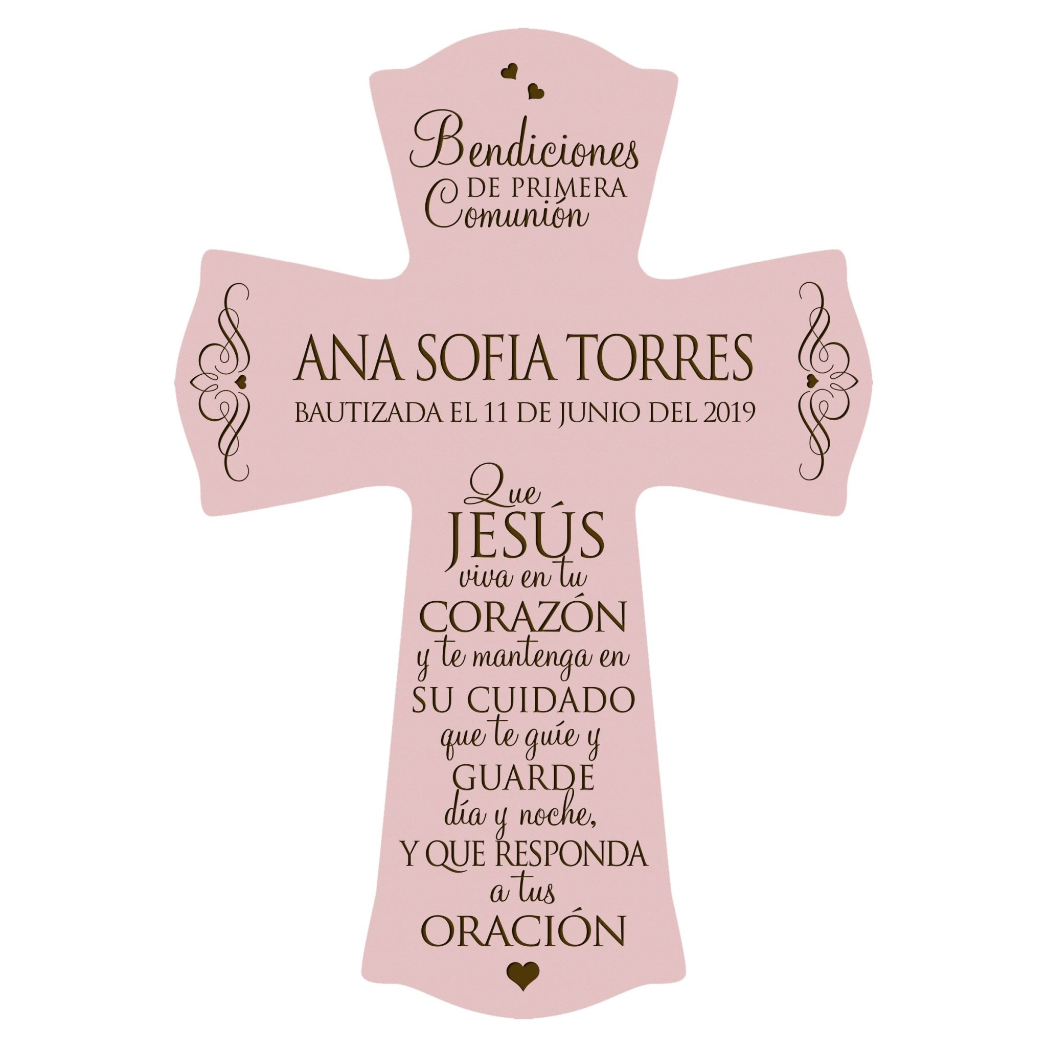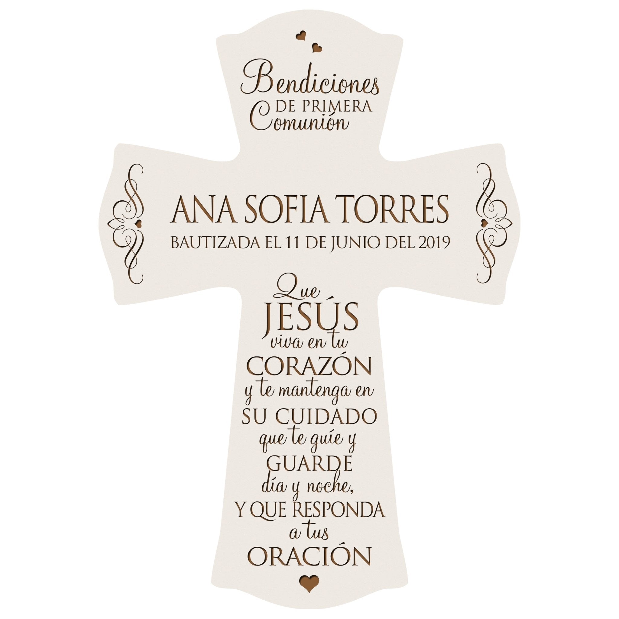 With their beautiful INSPIRATIONAL Spanish messages, LifeSong Milestones Baptism Wooden Wall Crosses are a great keepsake item for a special family member. With our quality selection of religious heartwarming decorative mini crosses, you'll be able to create a lasting memory with the ones you love most. With a TOUCHING verse and a GRACEFUL SILHOUETTE, these keepsake items are sure to be an inspirational reminder that will be cherished for years to come. This is a great gift for a baptism, first holy communion, or christening for a son, daughter, grandson, granddaughter, niece, nephew, godson, or goddaughter.