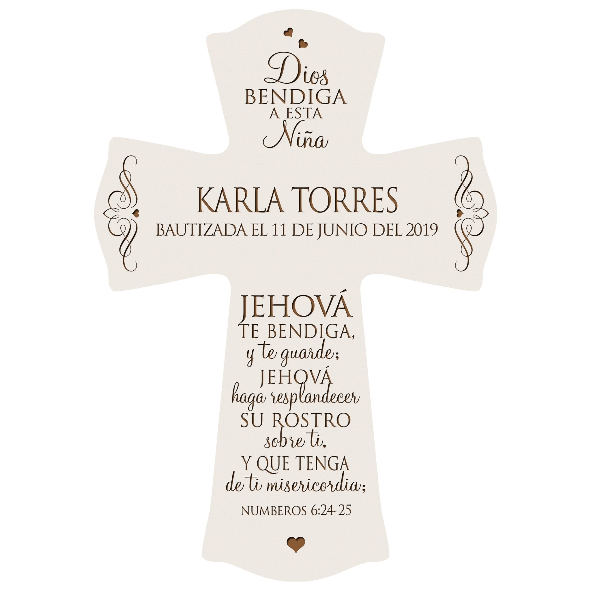 With their beautiful INSPIRATIONAL Spanish messages, LifeSong Milestones Baptism Wooden Wall Crosses are a great keepsake item for a special family member. With our quality selection of religious heartwarming decorative mini crosses, you'll be able to create a lasting memory with the ones you love most. With a TOUCHING verse and a GRACEFUL SILHOUETTE, these keepsake items are sure to be an inspirational reminder that will be cherished for years to come. This is a great gift for a baptism, first holy communion, or christening for a son, daughter, grandson, granddaughter, niece, nephew, godson, or goddaughter.
