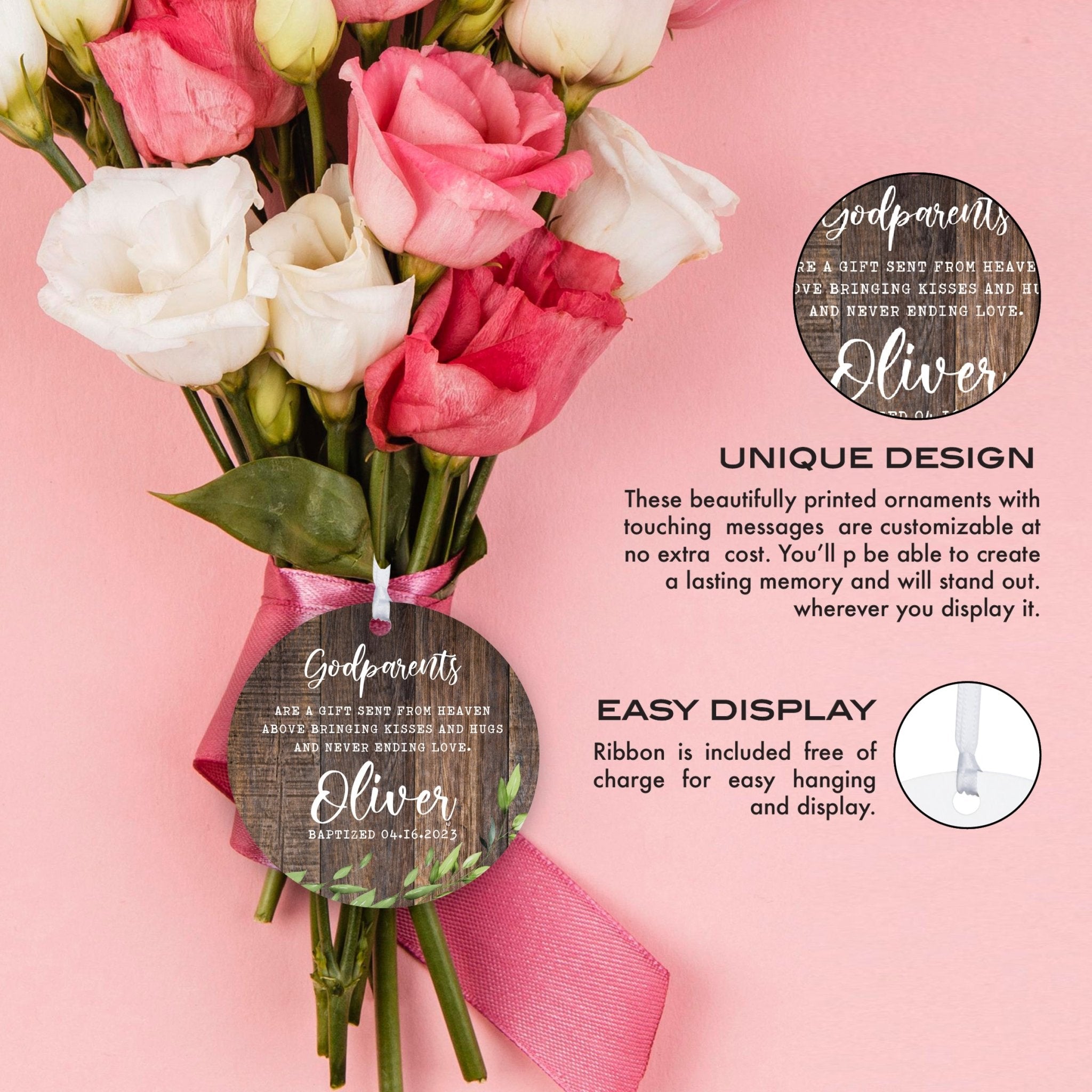 Introducing our exquisite Personalized Unique Wooden Baptism Ornament Gift for Godchild! Crafted with care, this ornament embodies the sacredness of baptism, making it an ideal keepsake. With its customizable feature, you can add your godchild's name and date for a personal touch. The ornament comes with a complimentary ribbon for effortless hanging and display, symbolizing the joyous occasion of baptism. Perfect for christening gifts, first communion gifts, and dedication ceremonies, it celebrates the spiritual journey of your beloved godchild. Delight both girls and boys with this charming baptismal gift, a heartfelt token from their cherished godparents. Add to cart now and cherish the moment forever!