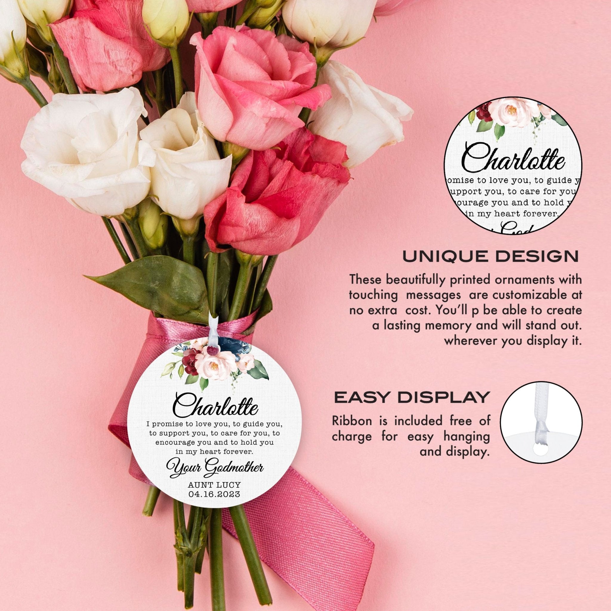 Introducing our exquisite Personalized Unique Wooden Baptism Ornament Gift for Goddaughter, a cherished keepsake for your special occasion. Crafted with care, this charming ornament exudes elegance and sentimentality. Each piece is meticulously personalized to capture the essence of your bond. Included free of charge is a ribbon for easy hanging and display, ensuring it graces any space beautifully. Ideal for baptism, christening, first communion, dedication, or any milestone moment. Elevate your gift-giving with this distinctive treasure, perfect for goddaughters. Embrace the joy of celebrating faith and love with this baptism ornament. Make it yours today and cherish the memories forever.