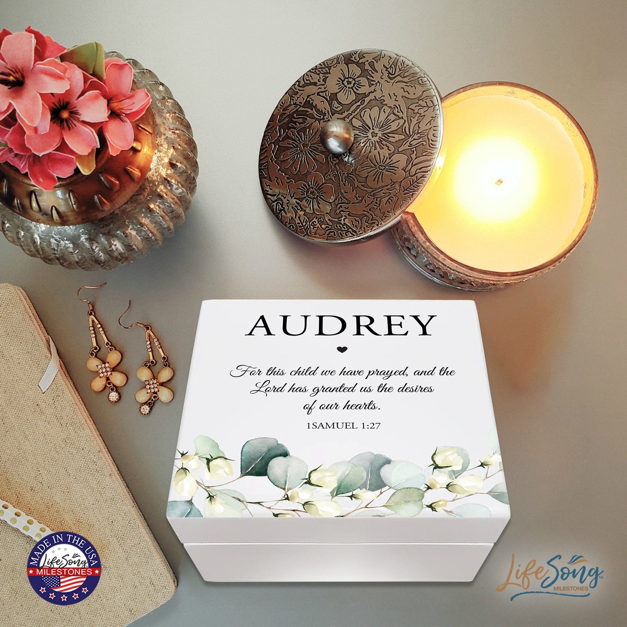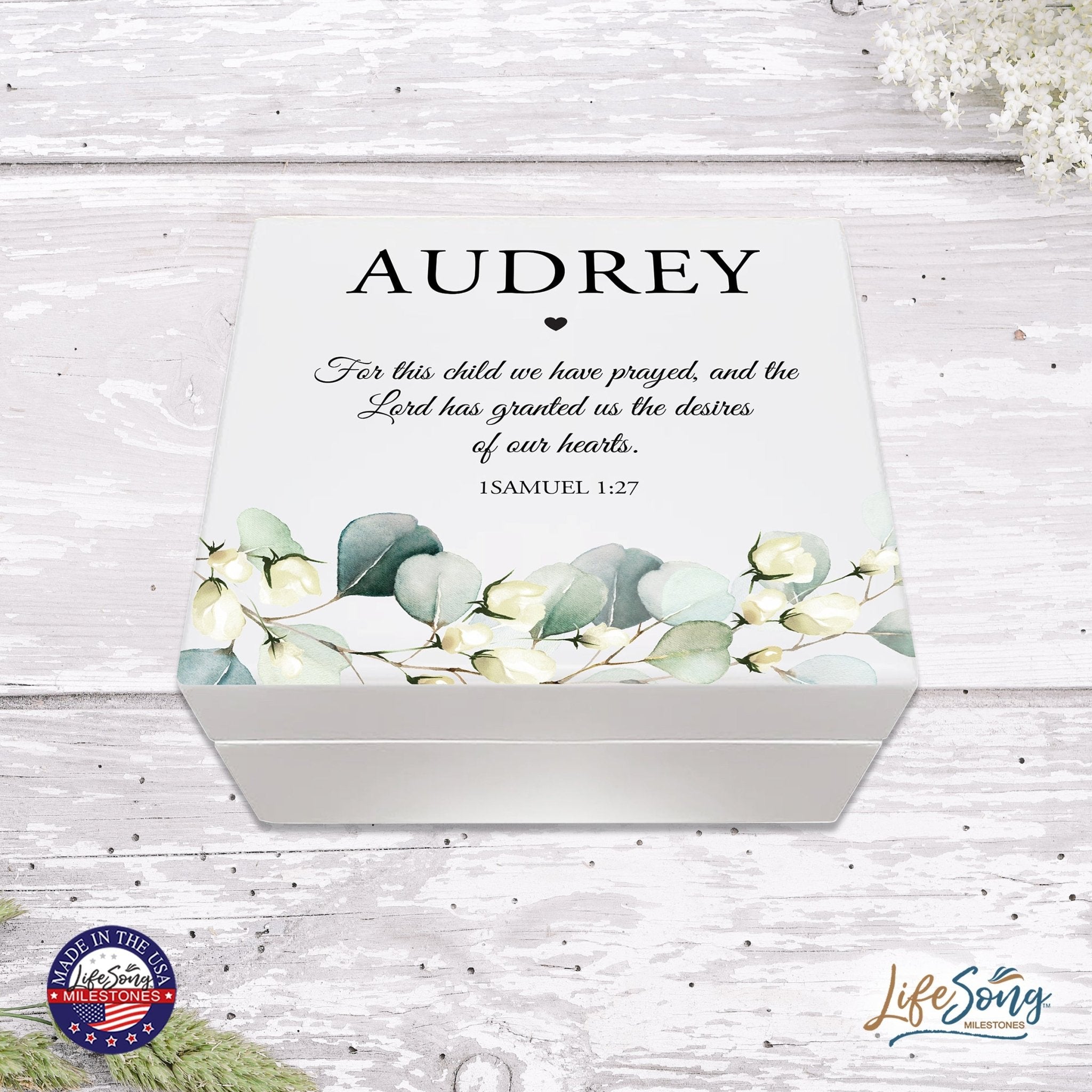 Discover the perfect treasure for cherished moments with our Personalized Baptism Keepsake Jewelry Box Gift for Boys and Girls. Crafted from durable MDF wood, this elegant box features a flip-top lid with a special hinge, revealing an inset mirror for added charm. Whether for baptism, christening, first communion, or dedication, this versatile keepsake caters to all occasions. Its timeless design makes it an ideal gift for both boys and girls, offering a secure place to store precious jewelry and mementos. Make every memory last a lifetime and celebrate milestones with this exquisite jewelry box. Shop now for unforgettable baptismal gifts and more.