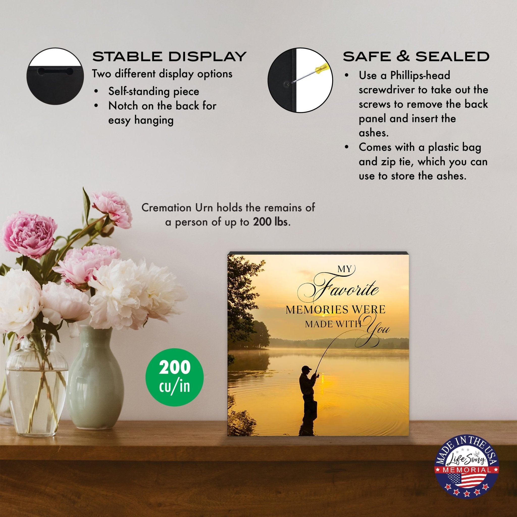 Honor the life and memory of a loved one with this handcrafted wooden shadow box urn by Lifesong Milestones. Thoughtfully designed and engraved in the USA, this memorial urn holds up to 200 cubic inches of adult cremation ashes—providing a beautiful tribute that can be proudly displayed at home or during a funeral service.