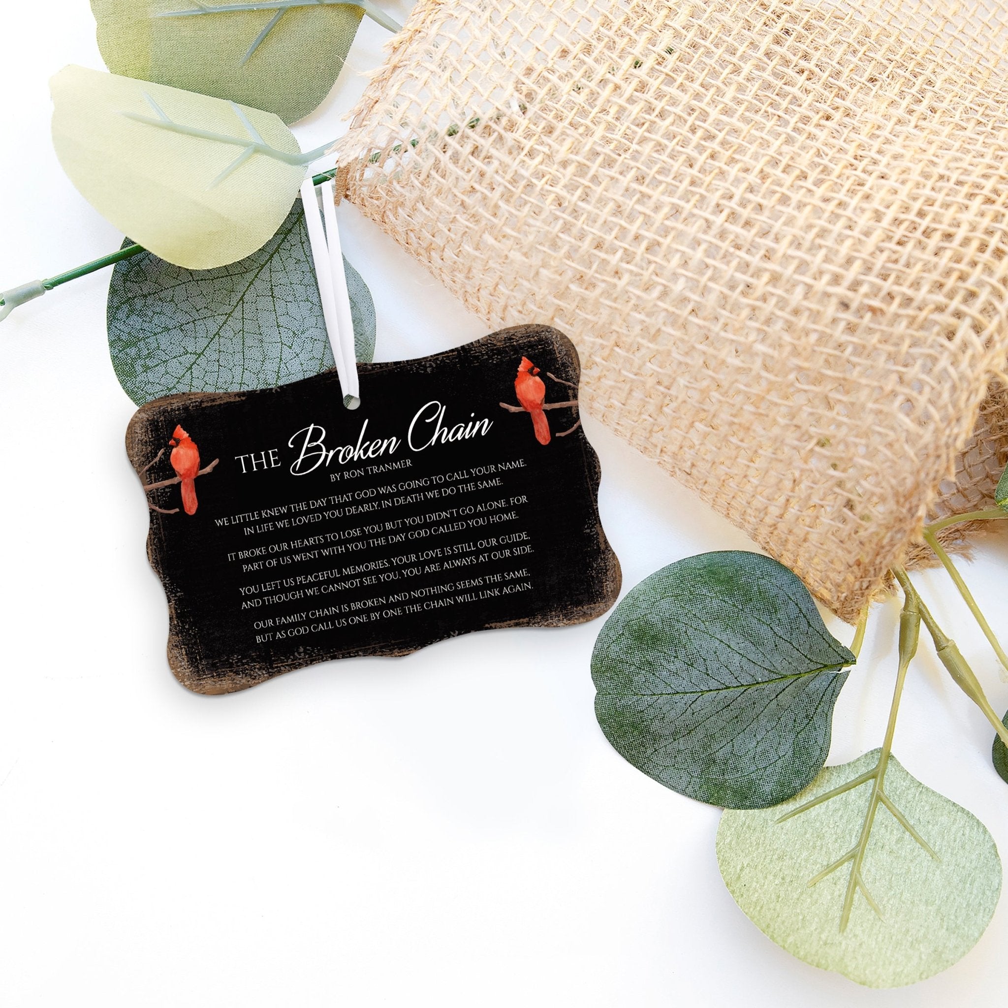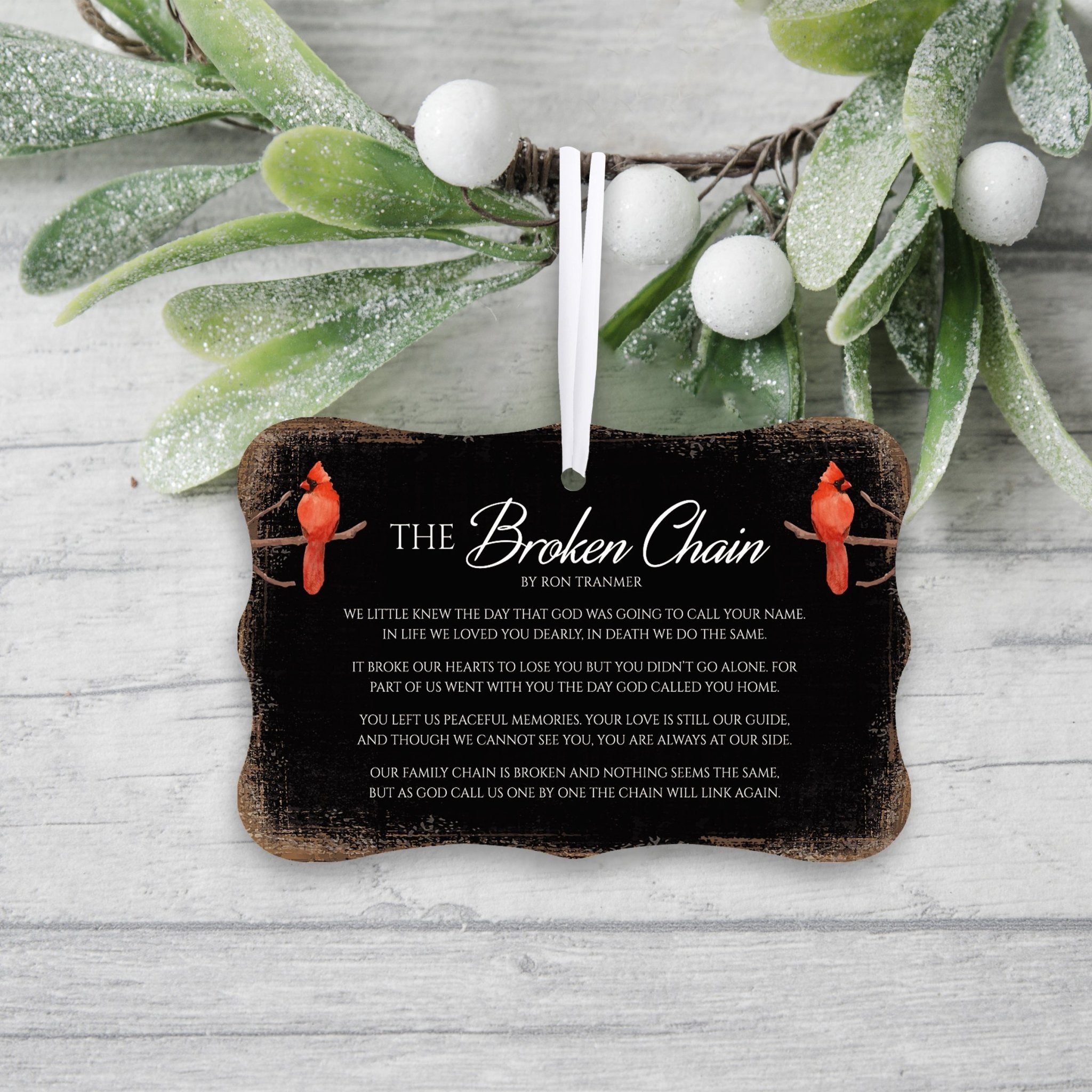 Introducing our exquisite Rustic Scalloped Cardinal Wooden Ornament, the perfect addition to your home decor. This charming piece combines the timeless beauty of cardinals with everyday verses, making it a thoughtful memorial or new home gift idea. Crafted with meticulous attention to detail, this ornament captures the rustic essence of nature while adding a touch of elegance to any space. The scalloped edges and rich wooden texture create a warm and inviting atmosphere, evoking a sense of tranquility. Whether hung on a Christmas tree, displayed on a mantel, or adorning a doorknob, these ornaments bring a touch of joy and comfort to any room. Embrace the symbolic significance of cardinals and elevate your decor with this enchanting piece that will be cherished for years to come.