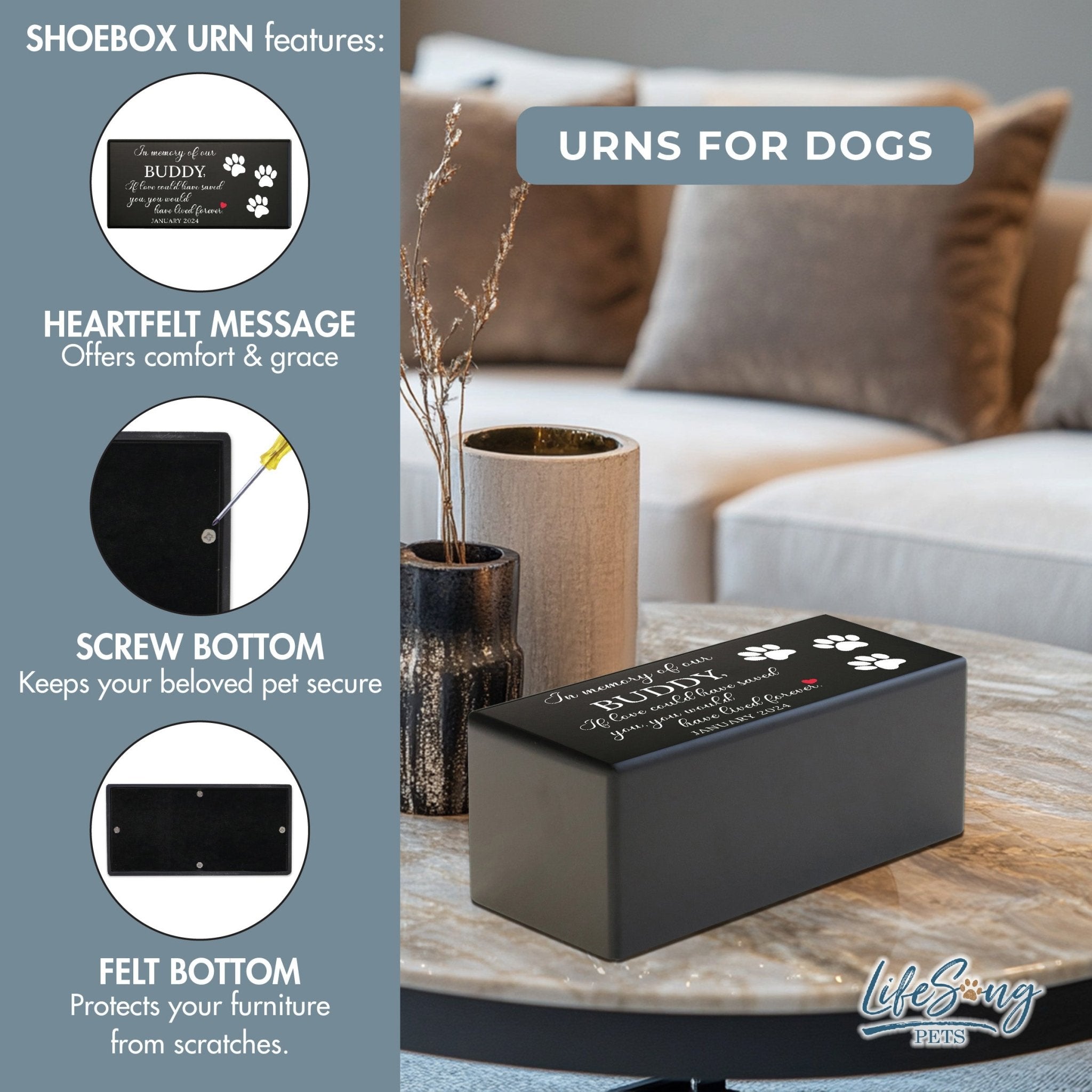 Saying goodbye to a beloved pet is never easy, but keeping their memory alive doesn’t have to be hard. LifeSong Milestones Wooden Pet Urns for Ashes is here to help you create a loving tribute. Beautifully crafted from premium wood, this urn can be customized with your pet’s name and a personal message, creating a one-of-a-kind keepsake. Designed for both dogs and cats, it holds your pet’s ashes with dignity and care. The urn’s timeless design makes it a comforting addition to your home, offering peace during your time of remembrance. This urn isn’t just a place for ashes—it’s a way to hold onto the unconditional love and joy your pet gave you.
