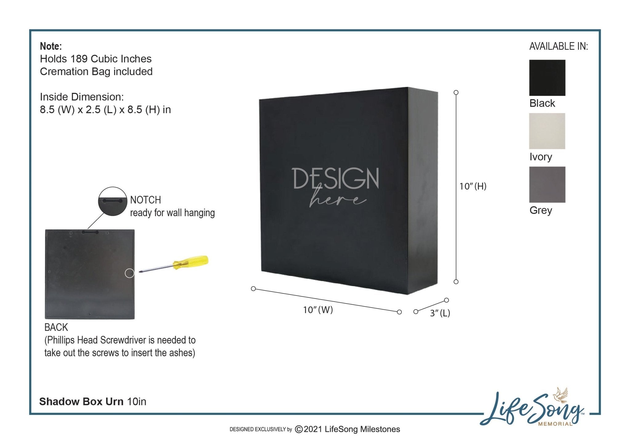 | 10x10x3 | 1 lb 10 oz | 189 Cubic Inches of Ashes |