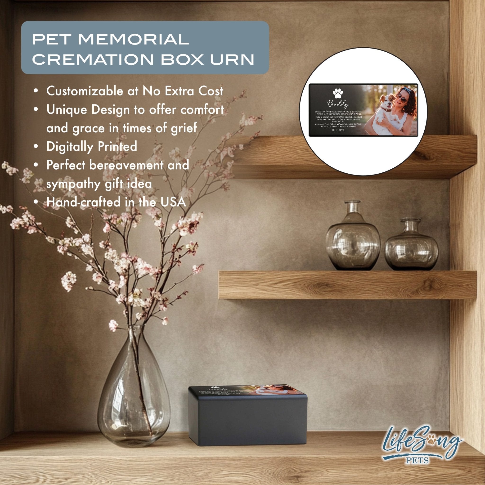 Saying goodbye to a beloved pet is never easy, but keeping their memory alive doesn’t have to be hard. LifeSong Milestones Custom Memorial Urn for Dogs and Cats is here to help you create a loving tribute. Beautifully crafted from premium wood, this urn can be customized with your pet’s name and a personal message, creating a one-of-a-kind keepsake. Designed for both dogs and cats, it holds your pet’s ashes with dignity and care. The urn’s timeless design makes it a comforting addition to your home, offering peace during your time of remembrance. This urn isn’t just a place for ashes—it’s a way to hold onto the unconditional love and joy your pet gave you.