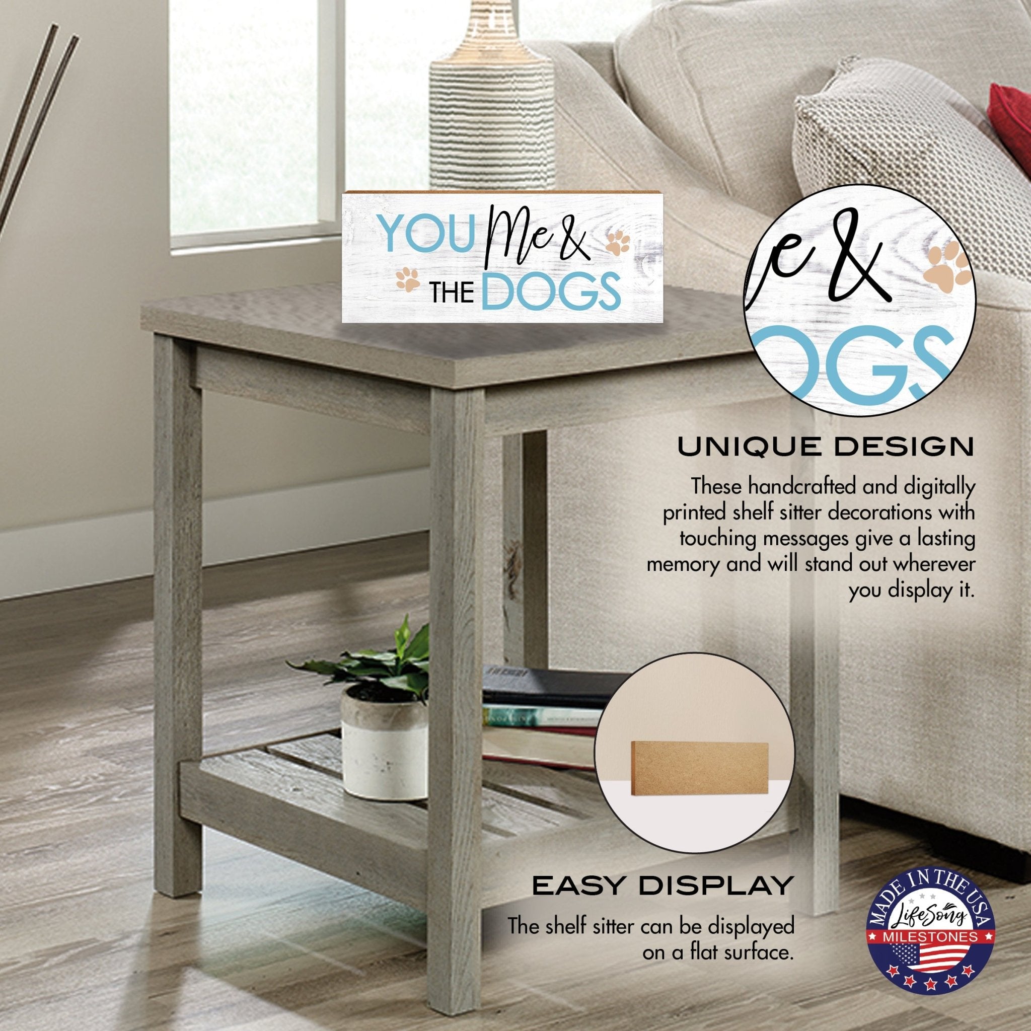 Elevate your home's ambiance with our Lifesong Milestones Pet Shelf Décor, meticulously crafted from high-quality MDF wood. These charming tabletop signs feature digitally printed, contemporary designs that celebrate your love for pets. With an unmistakably modern aesthetic, our unique pet shelf decor adds a touch of warmth to any space, making it a perfect gift for pet lovers.