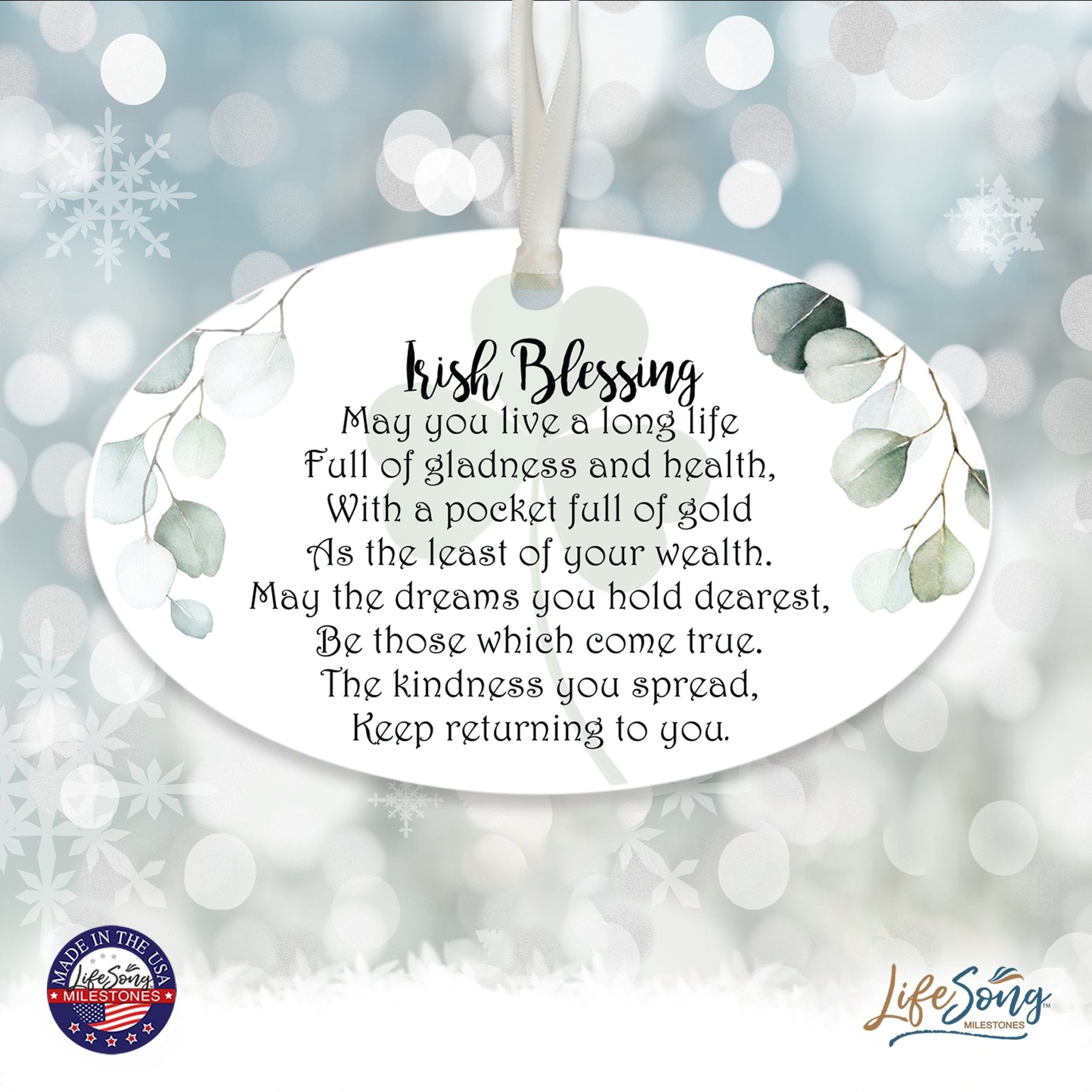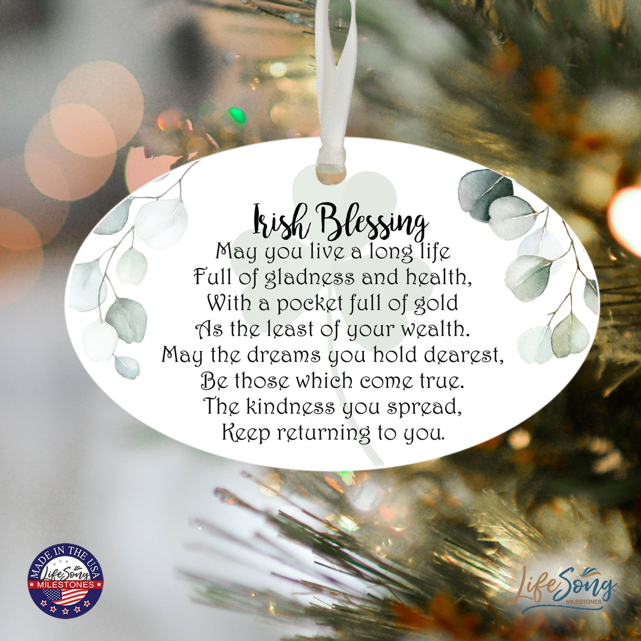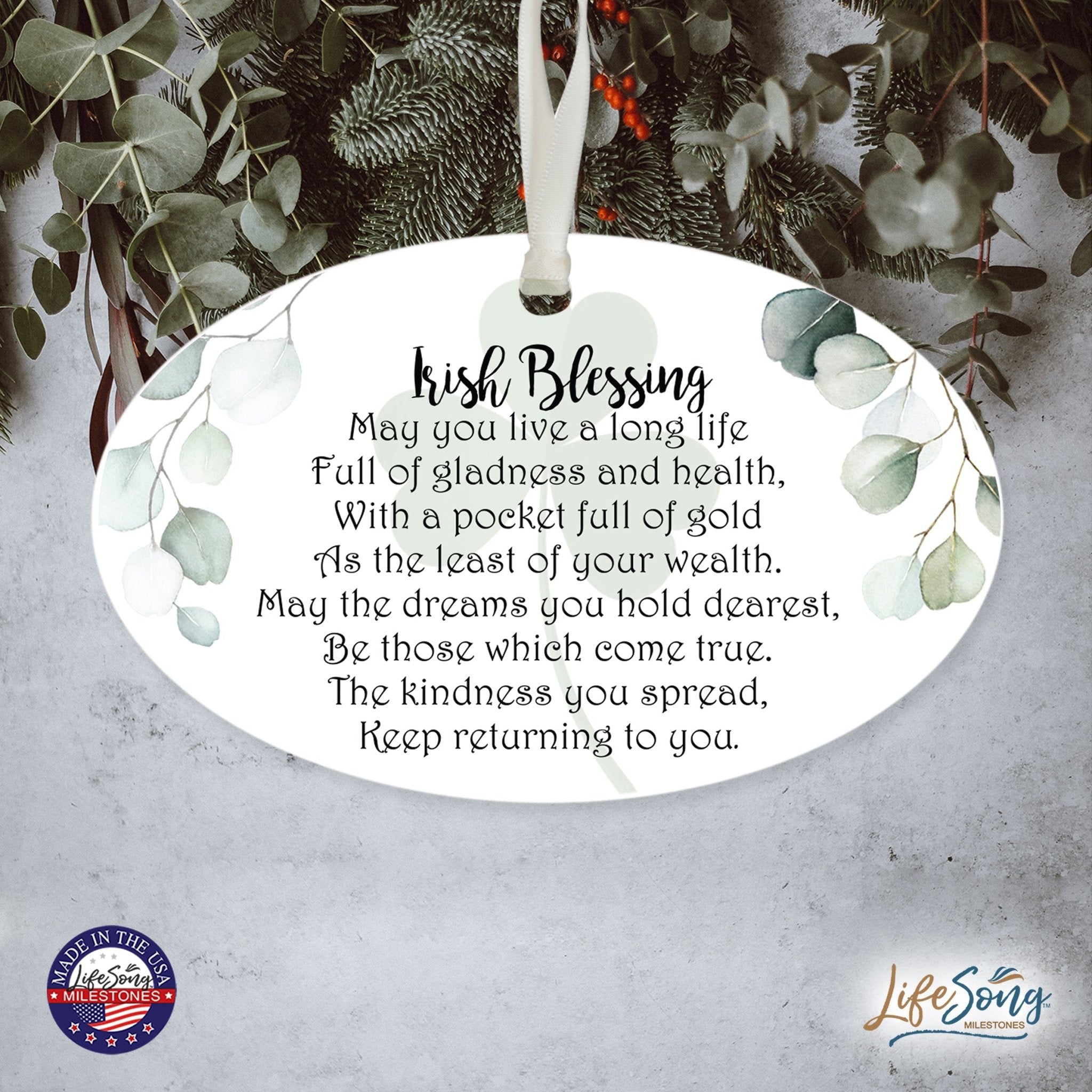 They say green is the color of luck. And in your house, it's a tradition to have luck on the walls. Hang it high in the window with the ribbon included so you'll always be reminded of the place you were born.