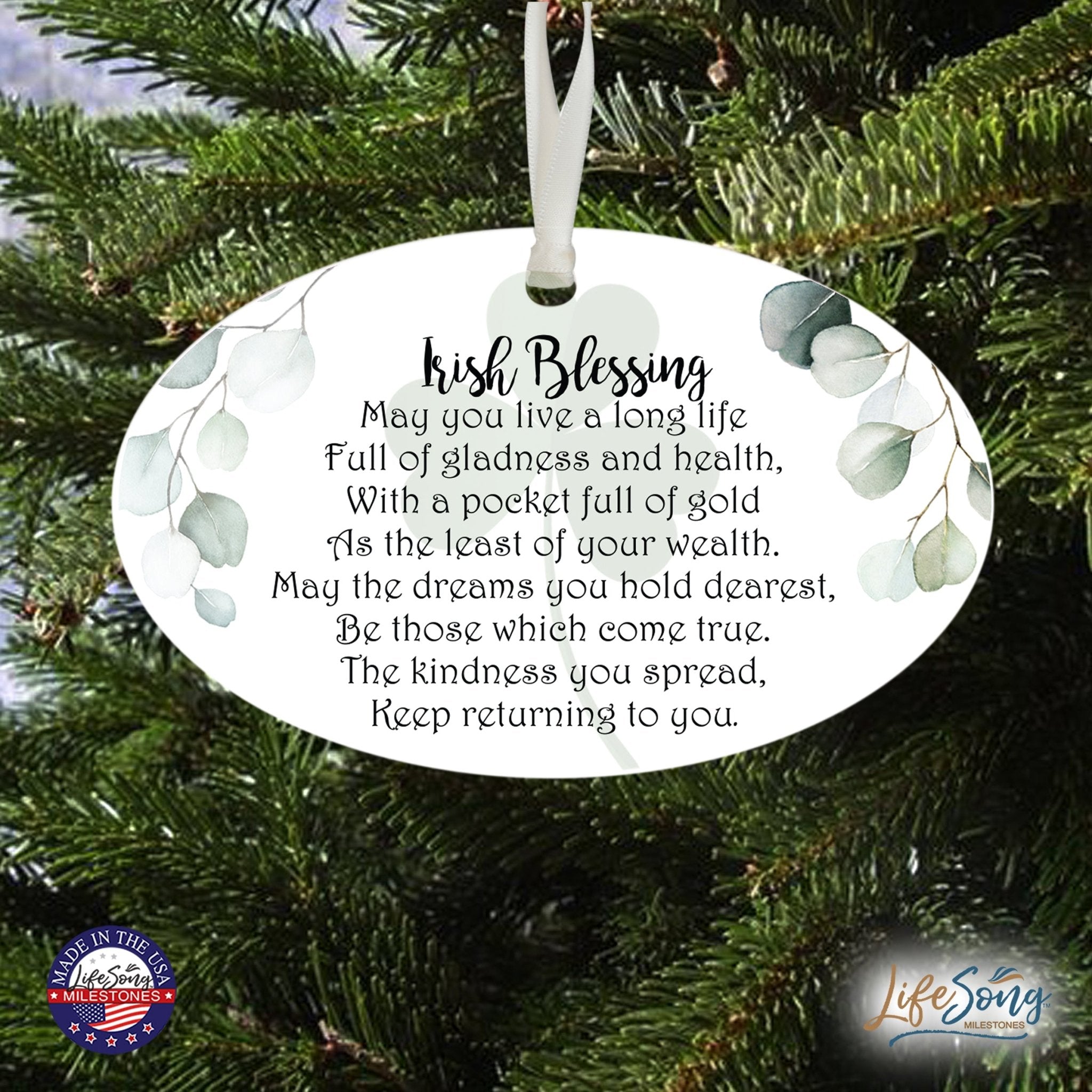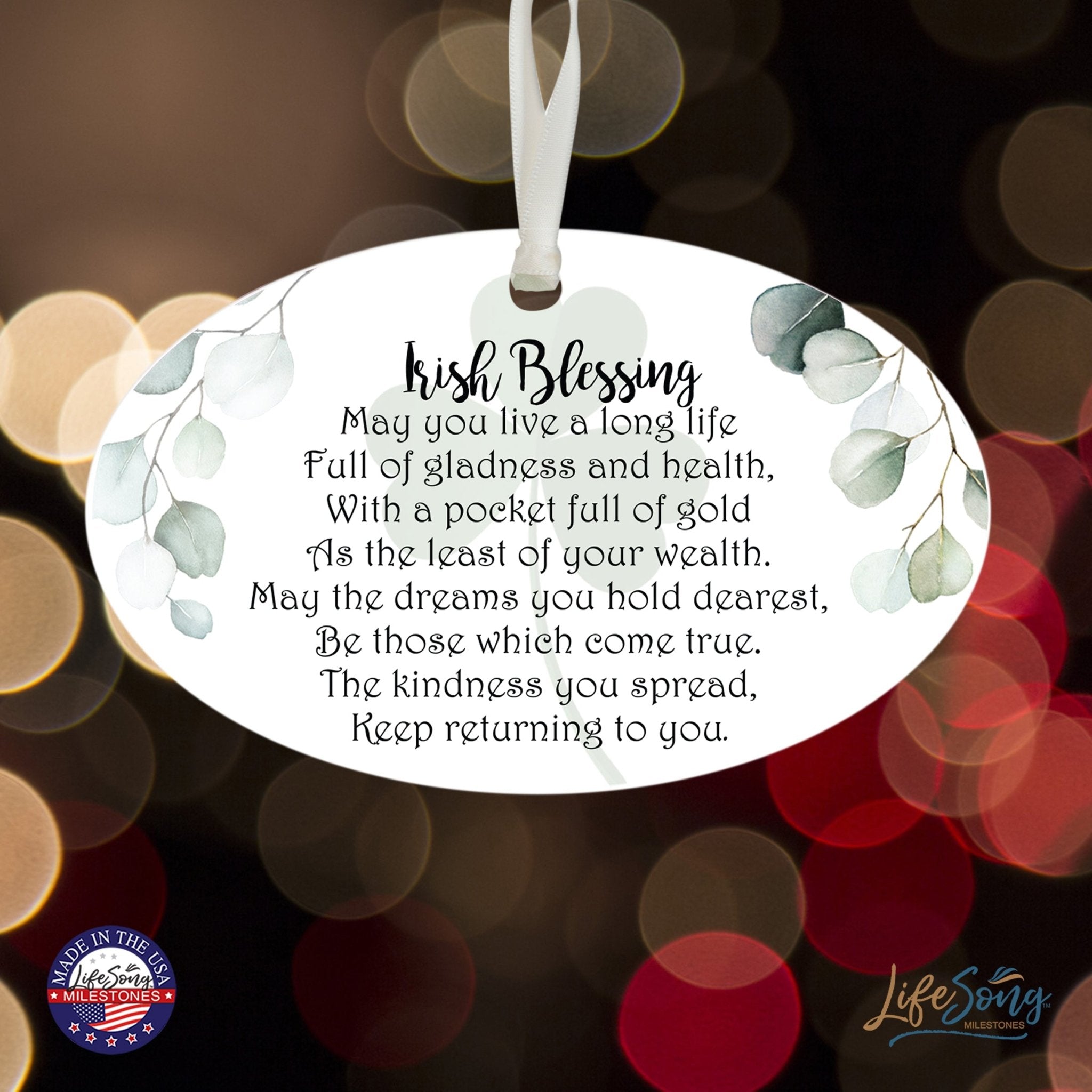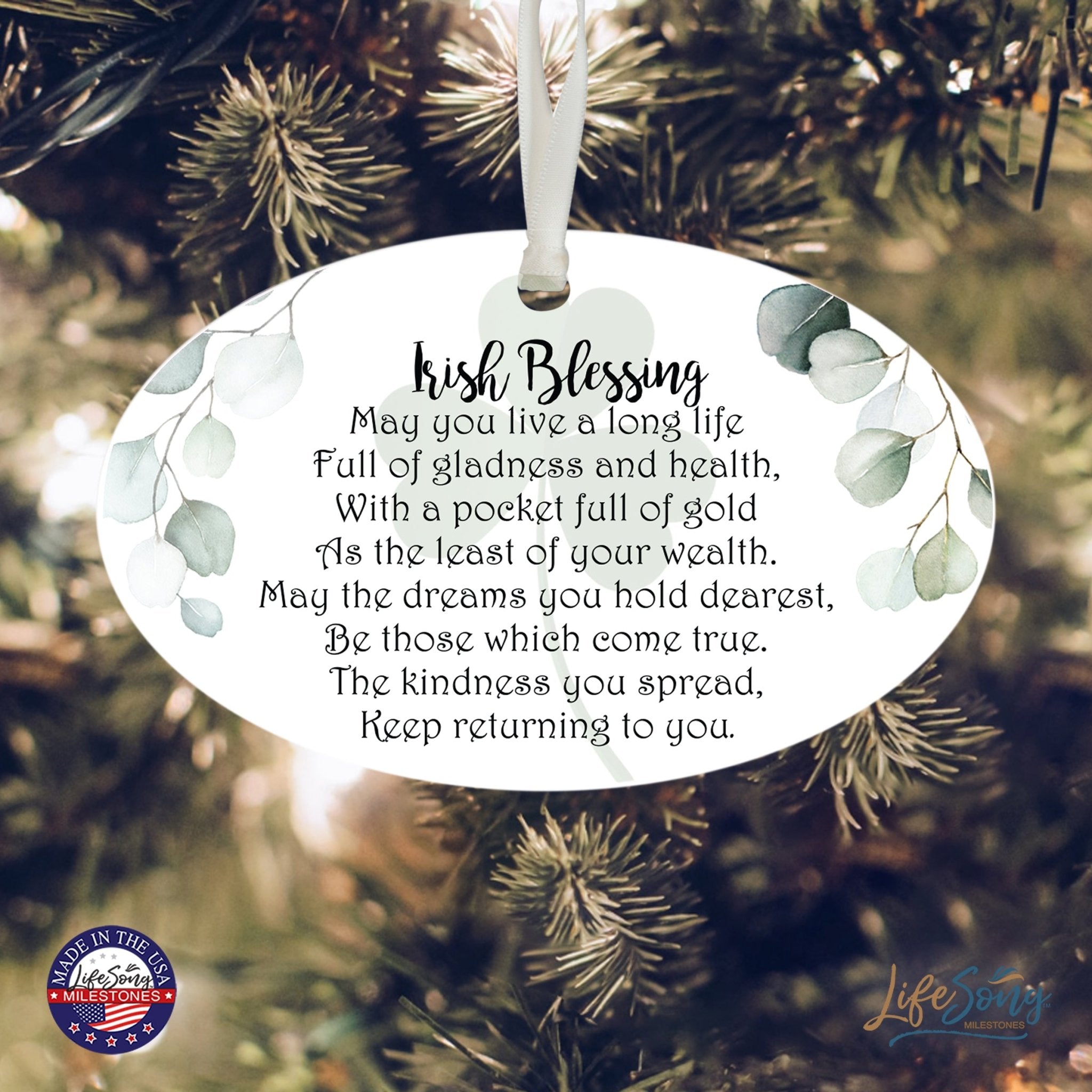 They say green is the color of luck. And in your house, it's a tradition to have luck on the walls. Hang it high in the window with the ribbon included so you'll always be reminded of the place you were born.