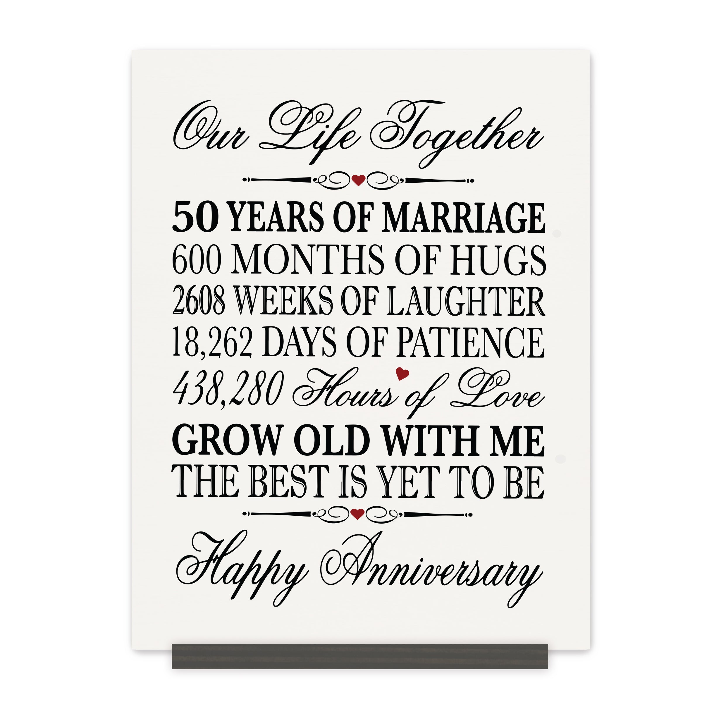 This plaque, tailored for couples, is the perfect gift to honor a 50th wedding anniversary. As a cherished keepsake, it reflects the profound bond and shared memories that have stood the test of time. Embrace the golden moments with LifeSong Milestones, commemorating 50 years of enduring love.