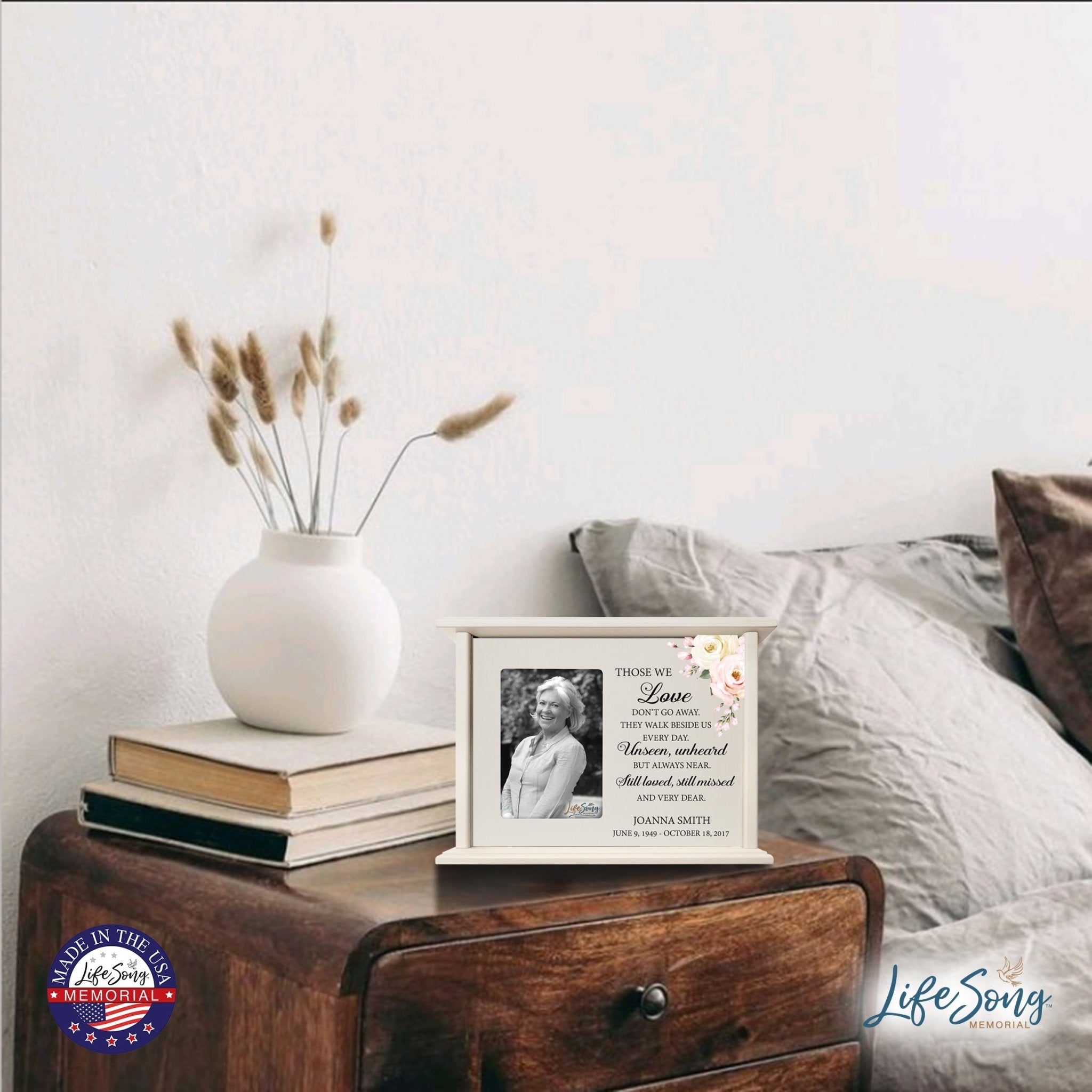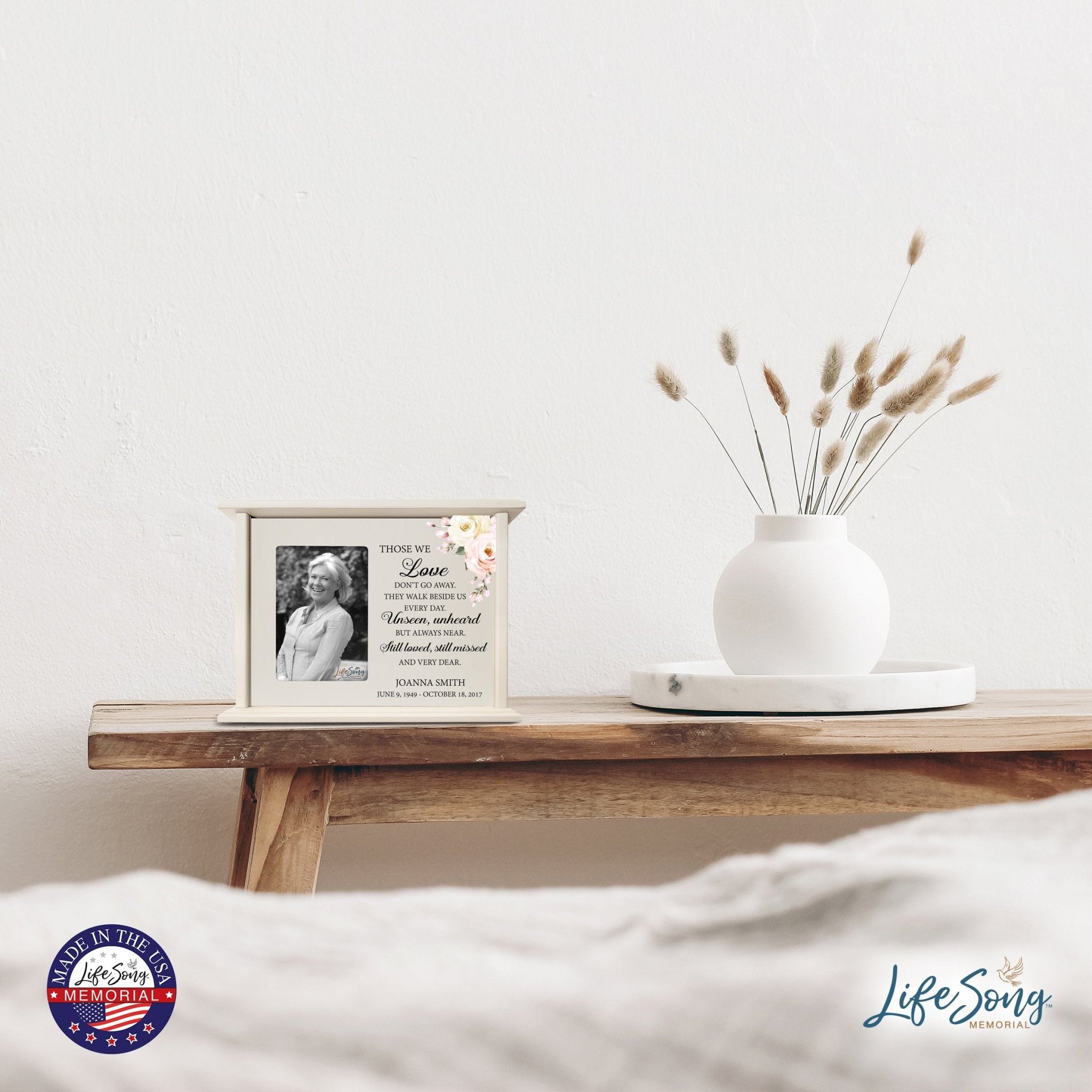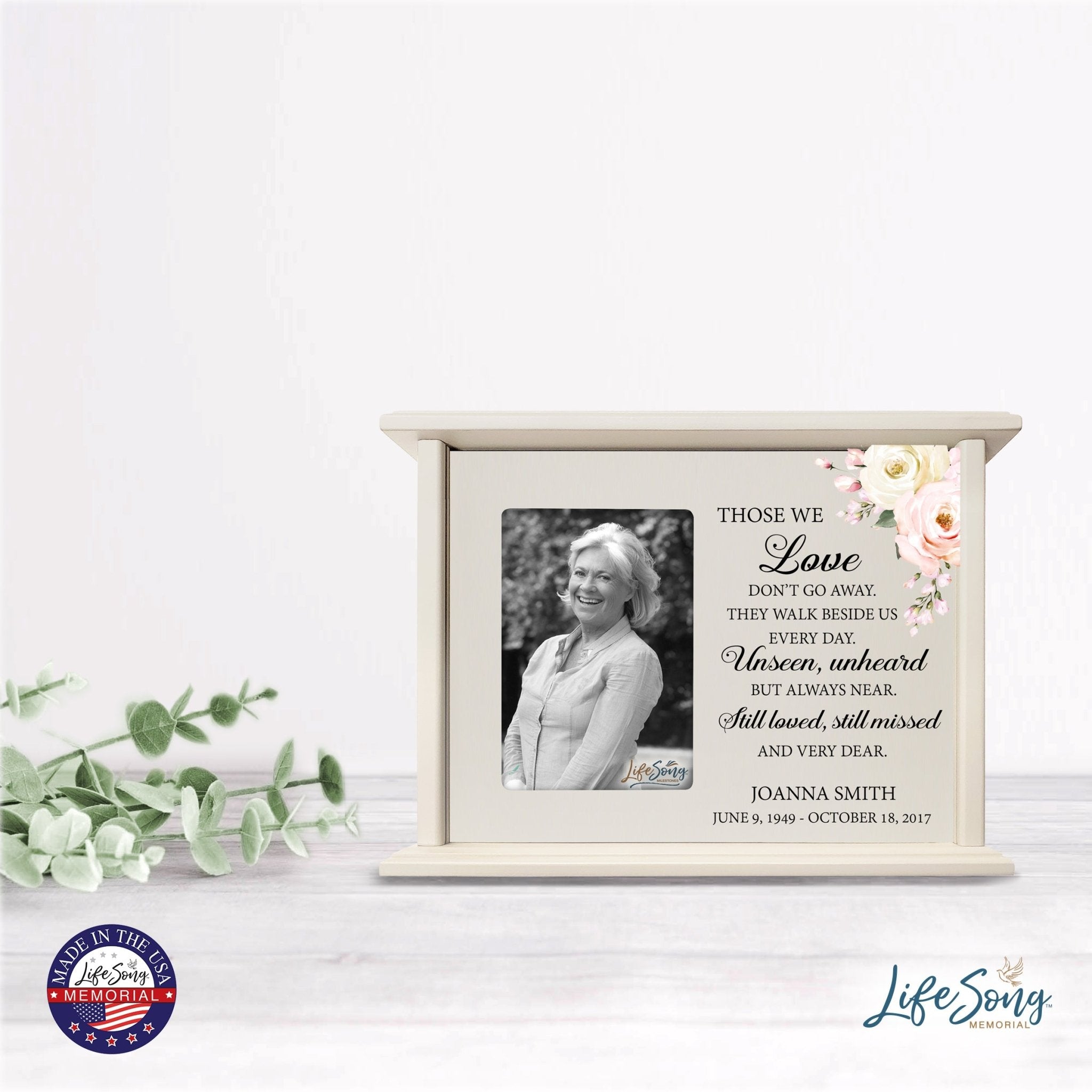 Honor your grandmother's memory with our Large Personalized Funeral Cremation Photo Urn Box. This elegant urn holds 200 cubic inches of human ashes and features a space for a cherished 4x5 photo. Adorned with intricate engraved designs, it offers a beautiful and unique wooden urn for your loved one. The custom memorial urn comes with a cremation bag for added convenience. Ideal for personalized urns for human ashes, it serves as a decorative yet functional tribute. Perfect as a sympathy or bereavement gift, this pretty urn ensures your grandmother's memory remains forever in your heart.