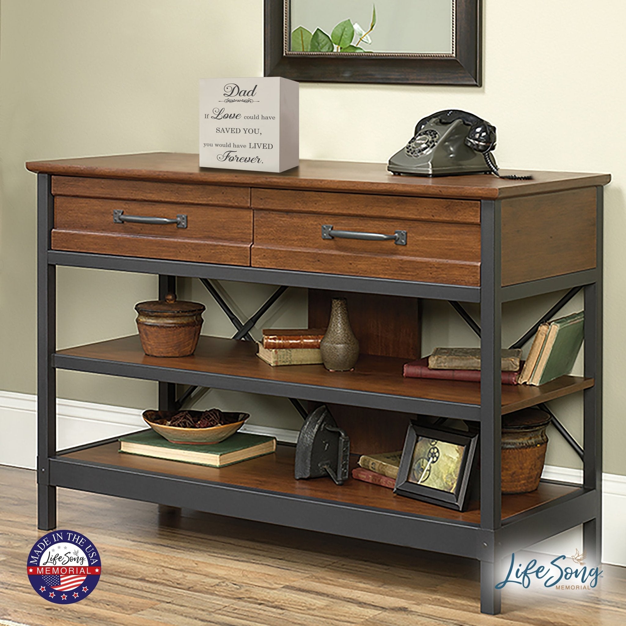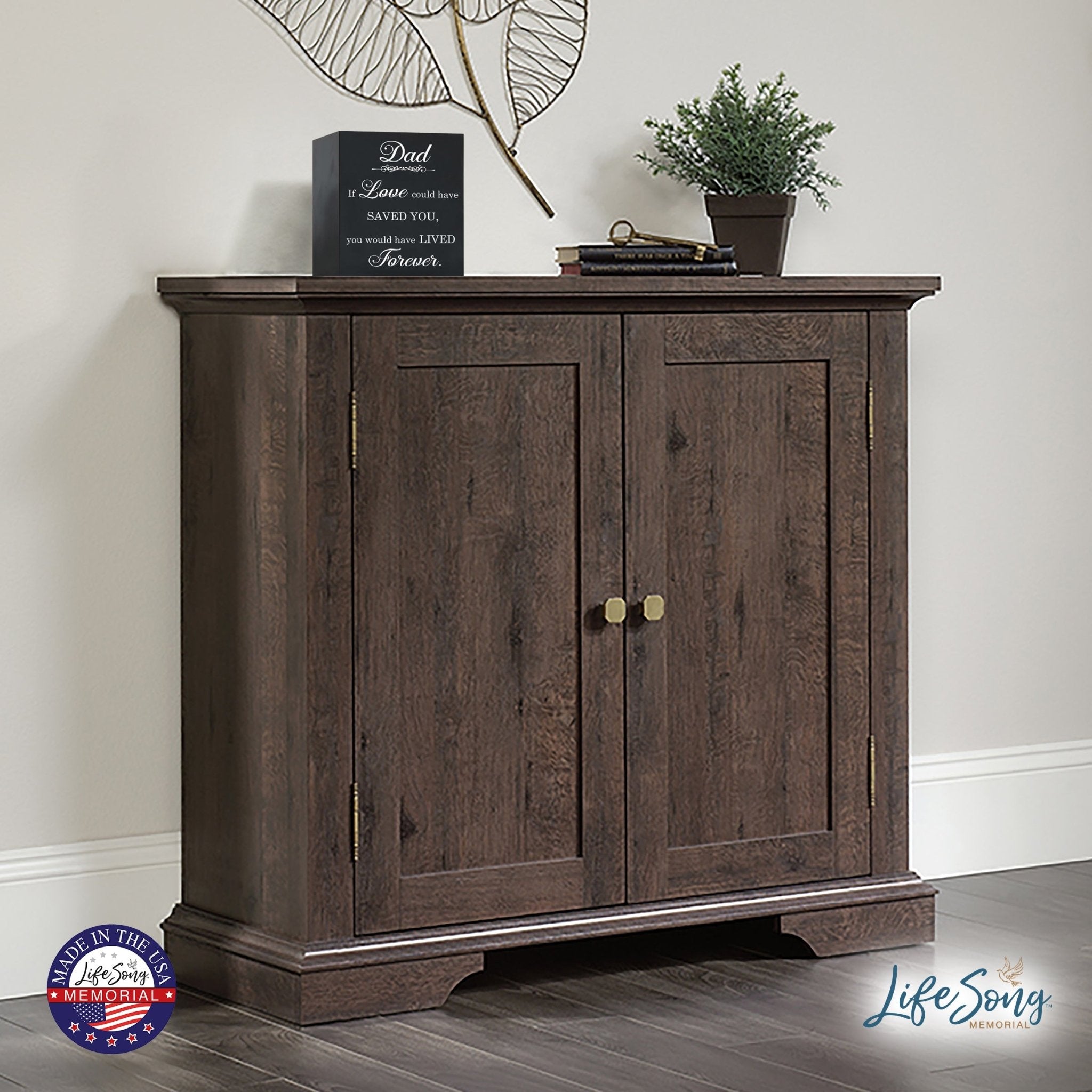 To access the urn, Phillips Head Screwdriver is needed to take out the screws to insert the ashes. Felt pads and Cremation bags are included free of charge. Shadow Box Urn can be a self-standing surface and has a notch on the back making them ready for wall hanging.