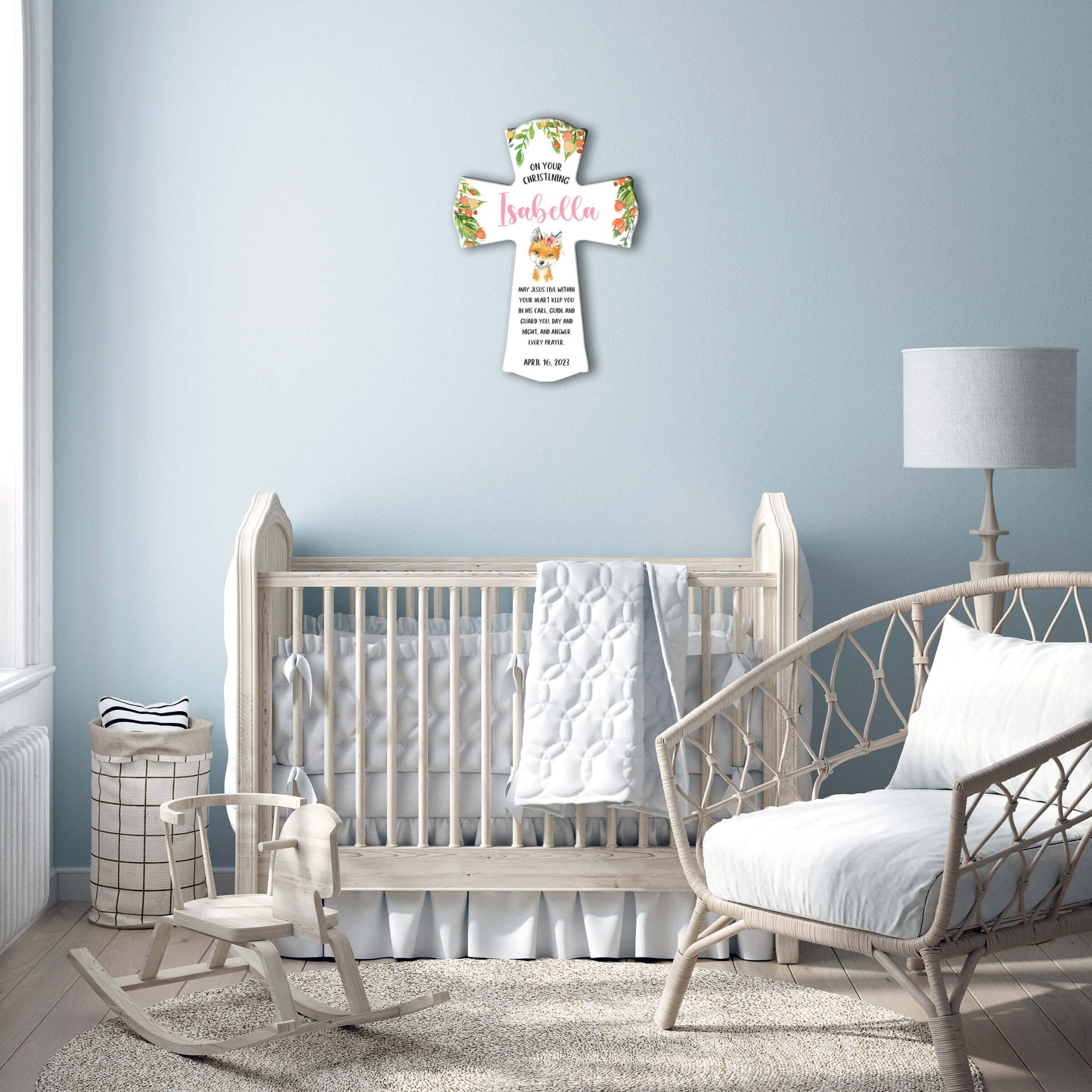 Celebrate a christening with Lifesong Milestones' 8.5x11 wall cross. Our personalized wooden crosses make perfect gifts for girls and boys. This wooden cross is an elegant and meaningful addition to any baby's room decor, and it serves as a constant reminder of their faith and blessings..