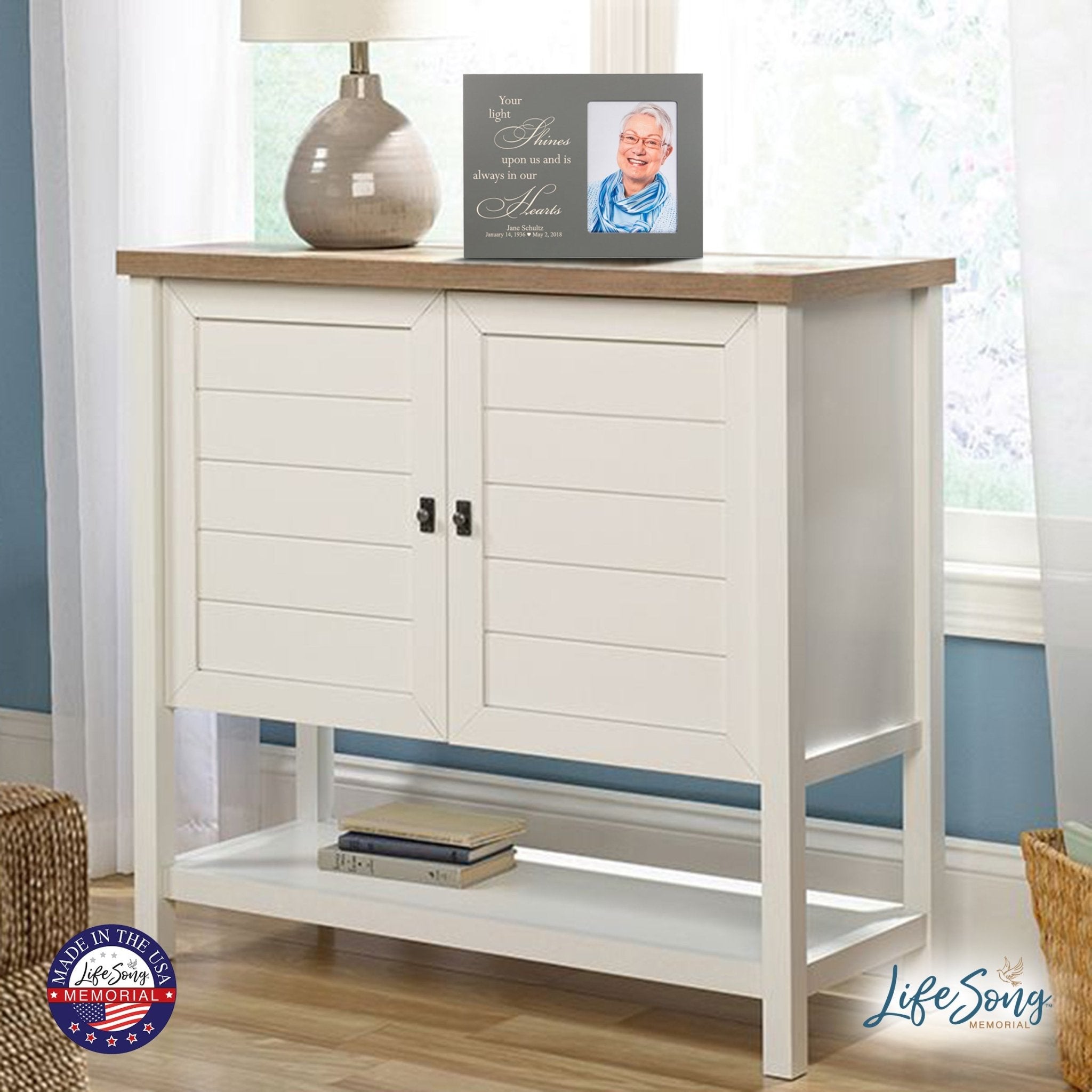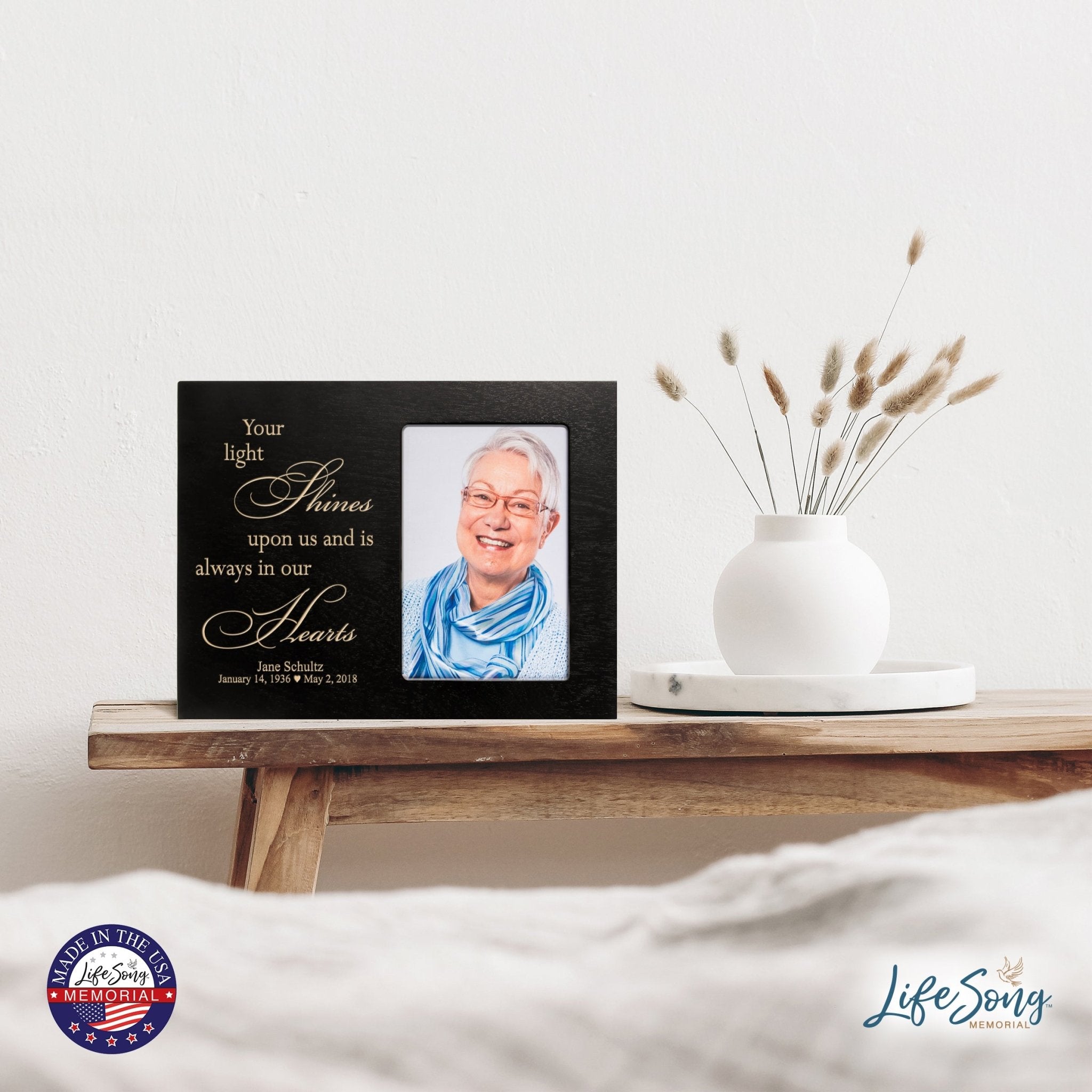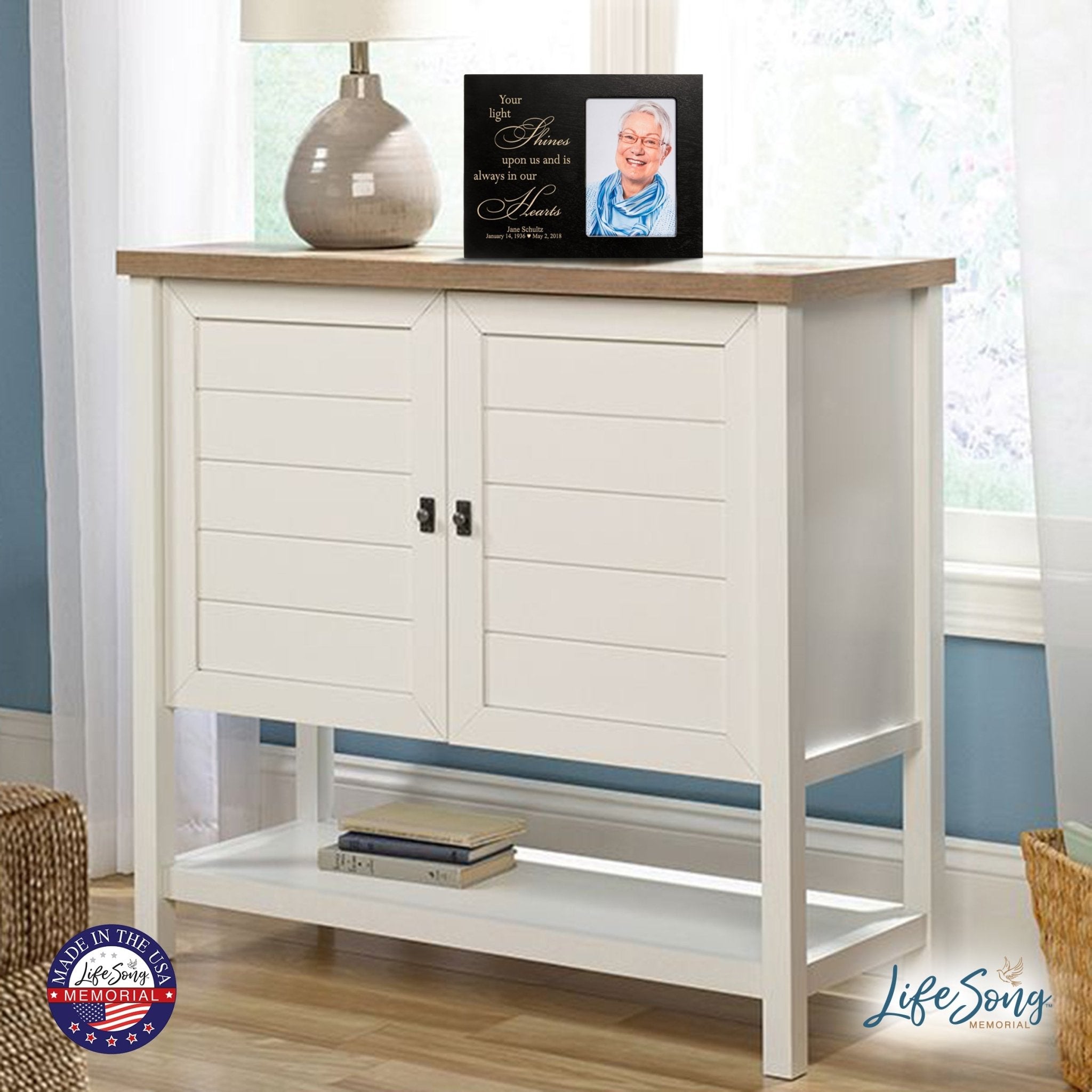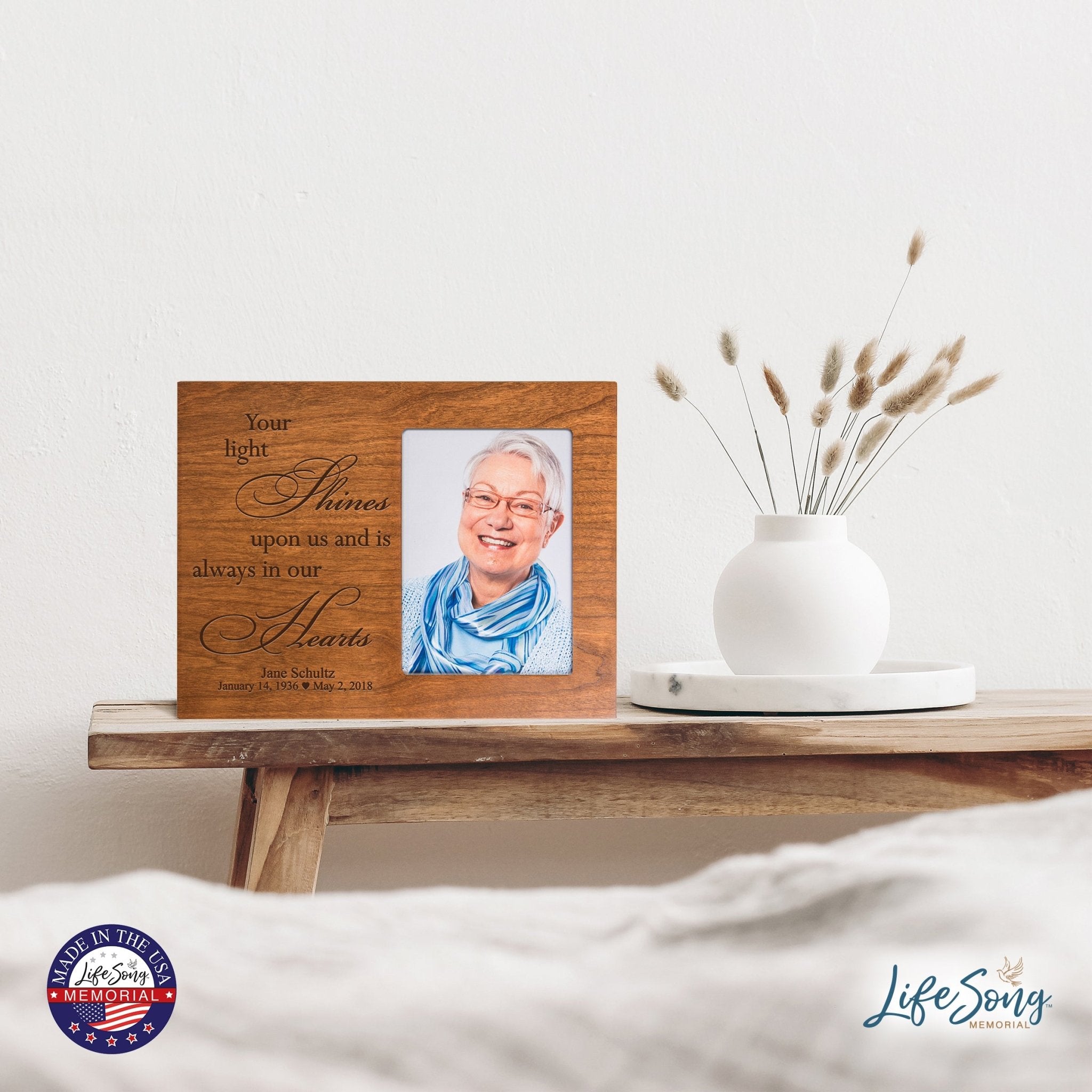 THESE TIMELESS eye-catching picture frame from LifeSong Memorials Collection keeps the photos of a loved one on display when they are no longer living. Honor the life of a departed loved one with our quality selection of memorial sympathy picture frames, which can also serve as a gift that will be cherished and loved forever. Made from top-quality re-engineered wood made in the USA. This unique and handmade picture frame will keep precious the memories you’ve shared with your loved one who has passed on. This memorial photo frame is custom-made and handled with love and care. A perfect gift idea to honor the tradition of your family and made with love just for you. It is personalized and digitally printed with a beautiful verse for personal touches to make it a forever keepsake. Various verses and colors to choose from that will remember loved ones that have passed on.