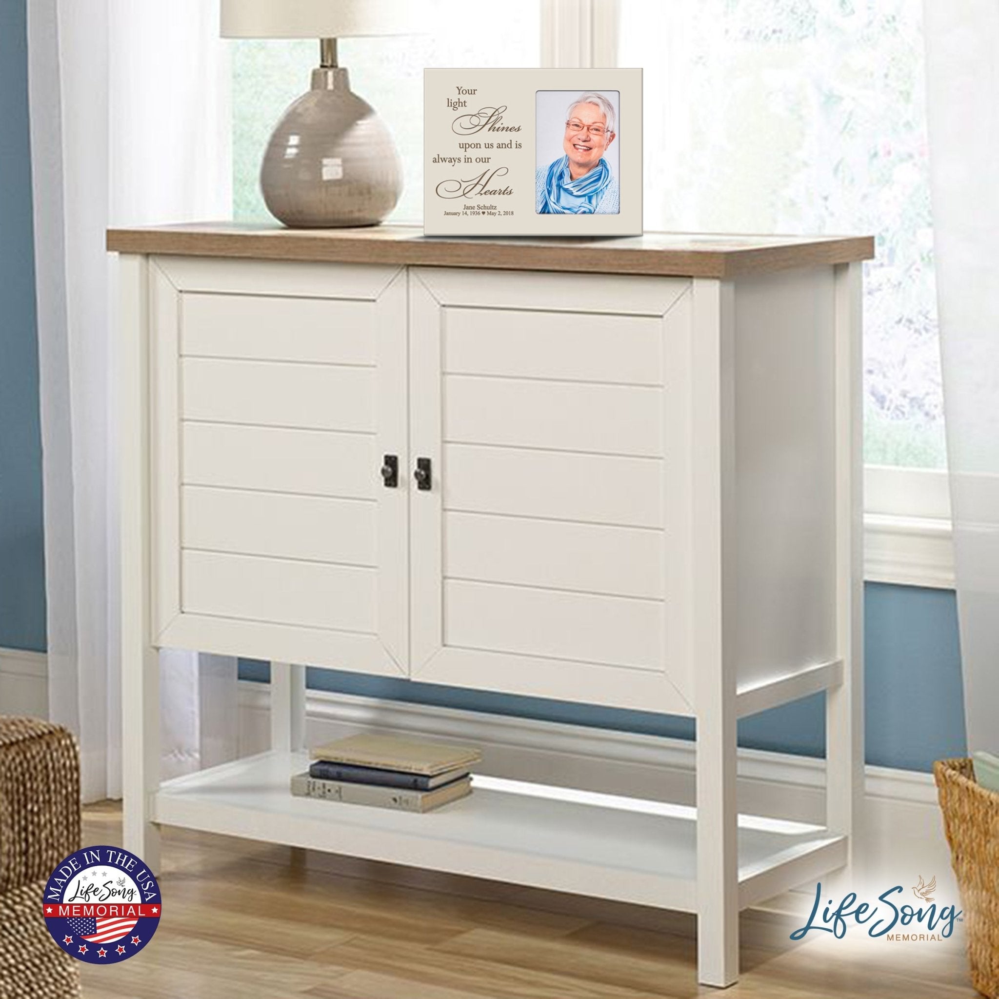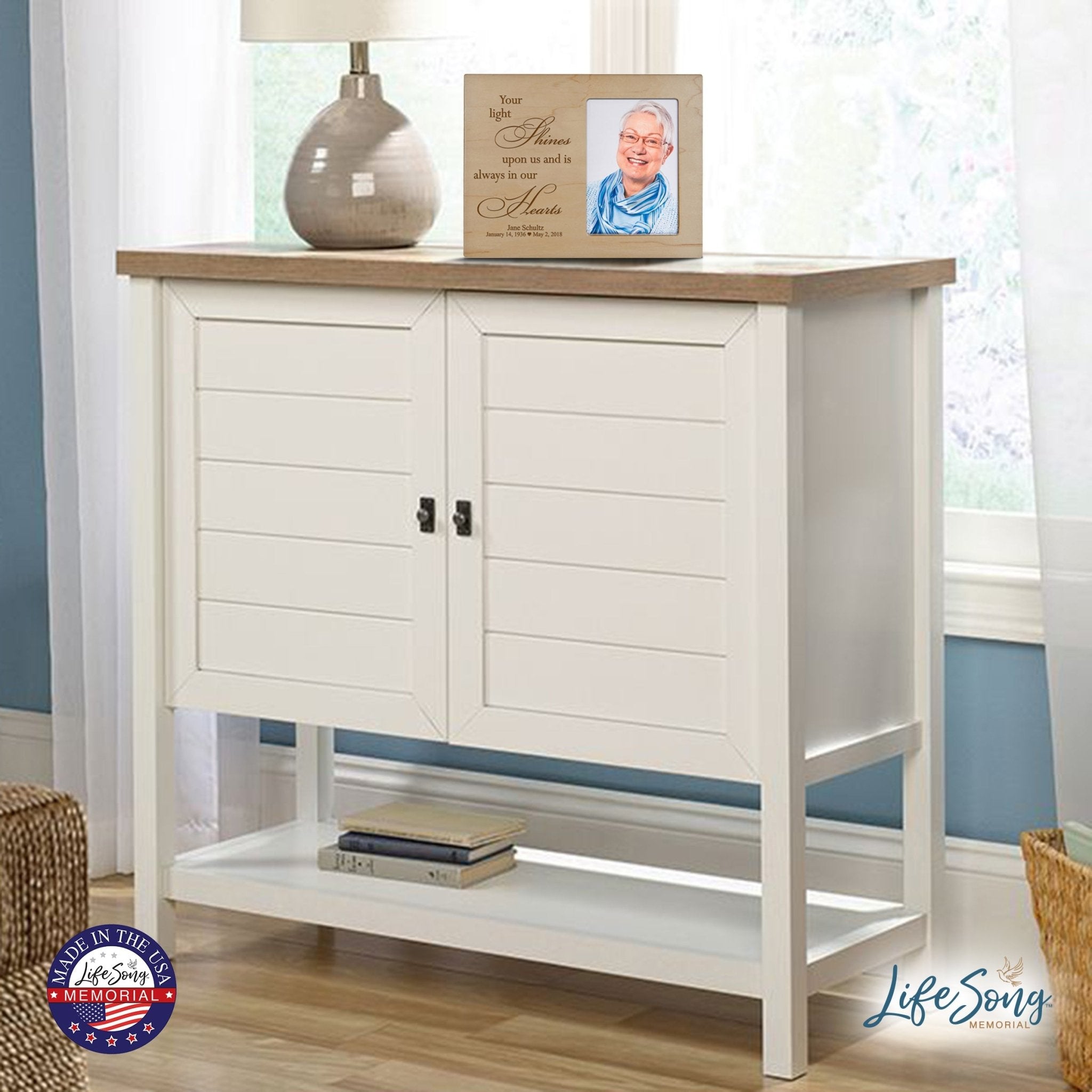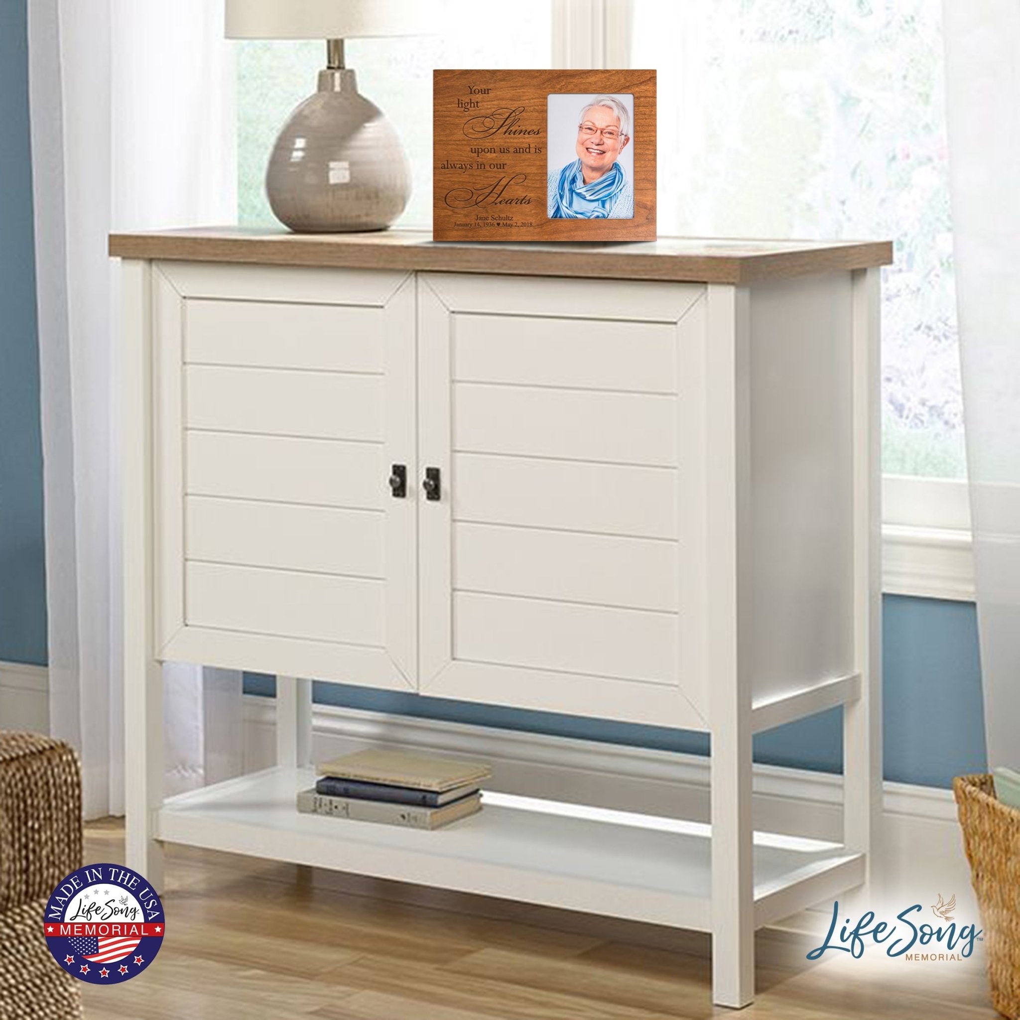THESE TIMELESS eye-catching picture frame from LifeSong Memorials Collection keeps the photos of a loved one on display when they are no longer living. Honor the life of a departed loved one with our quality selection of memorial sympathy picture frames, which can also serve as a gift that will be cherished and loved forever. Made from top-quality re-engineered wood made in the USA. This unique and handmade picture frame will keep precious the memories you’ve shared with your loved one who has passed on. This memorial photo frame is custom-made and handled with love and care. A perfect gift idea to honor the tradition of your family and made with love just for you. It is personalized and digitally printed with a beautiful verse for personal touches to make it a forever keepsake. Various verses and colors to choose from that will remember loved ones that have passed on.