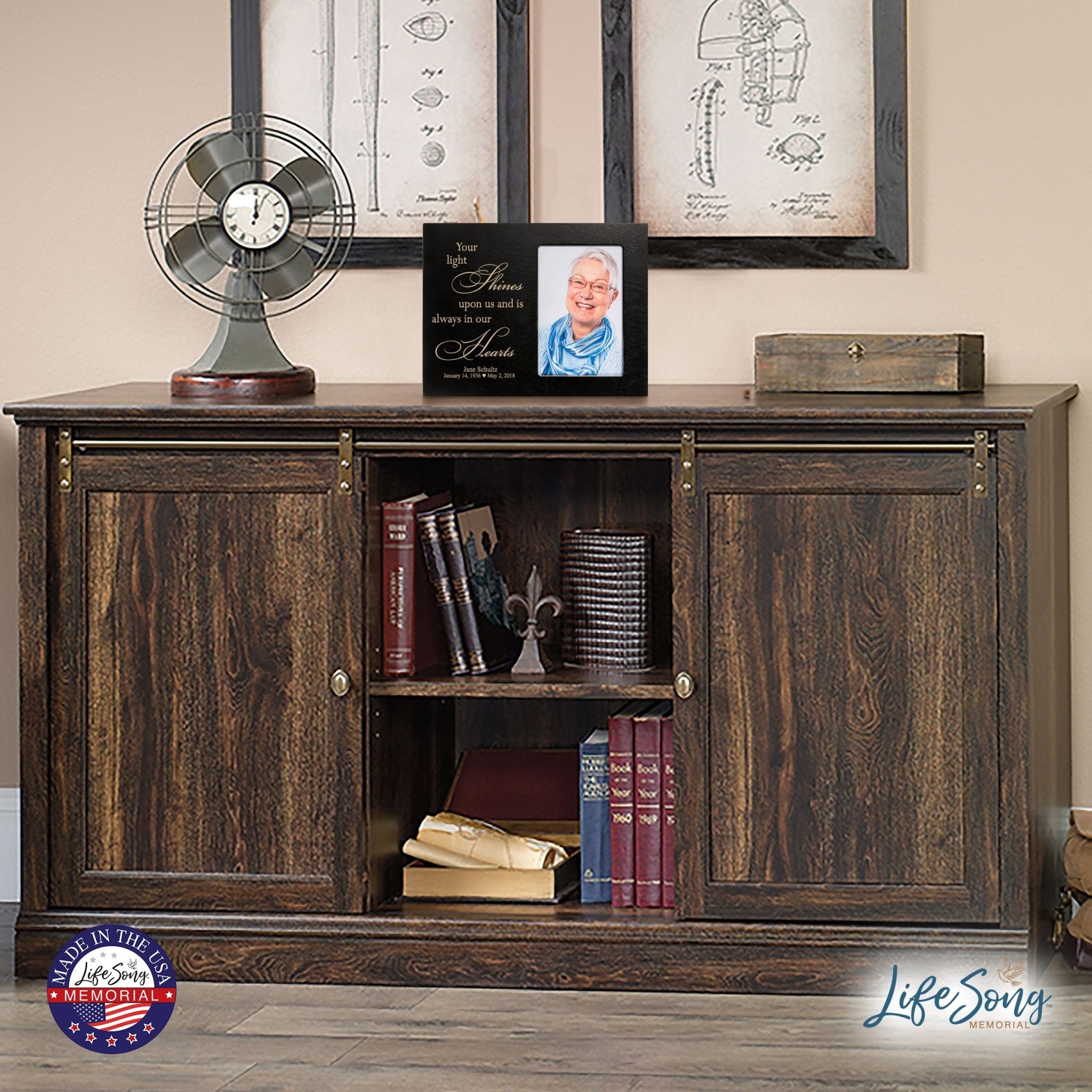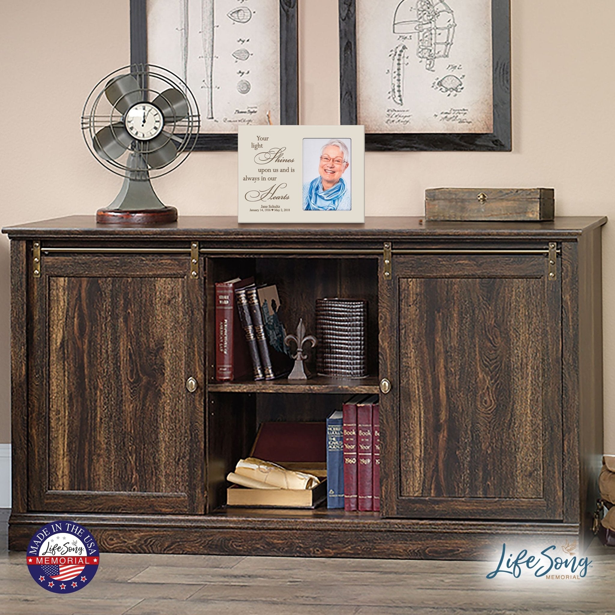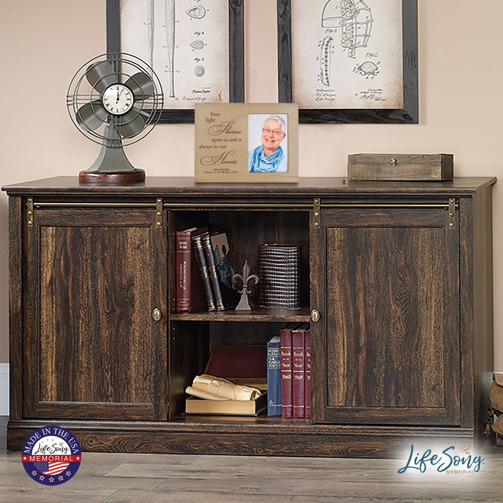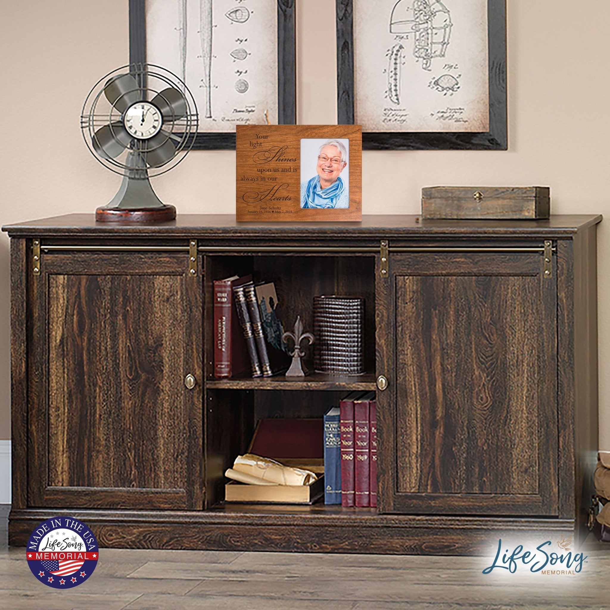 THESE TIMELESS eye-catching picture frame from LifeSong Memorials Collection keeps the photos of a loved one on display when they are no longer living. Honor the life of a departed loved one with our quality selection of memorial sympathy picture frames, which can also serve as a gift that will be cherished and loved forever. Made from top-quality re-engineered wood made in the USA. This unique and handmade picture frame will keep precious the memories you’ve shared with your loved one who has passed on. This memorial photo frame is custom-made and handled with love and care. A perfect gift idea to honor the tradition of your family and made with love just for you. It is personalized and digitally printed with a beautiful verse for personal touches to make it a forever keepsake. Various verses and colors to choose from that will remember loved ones that have passed on.