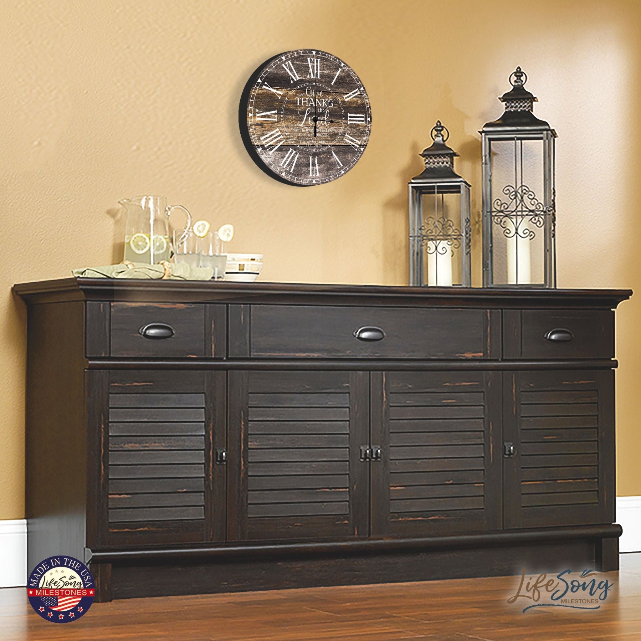 Lifesong Milestones offer this unique 12” wall hanging wooden wall clock that is useful and sophisticated. With two kinds of clocks’ thickness to choose from, this will be a perfect addition to your homes. There are also various colors and designs available, all elegantly crafted with precision and care. This will be the perfect gift that is both functional and stylish.